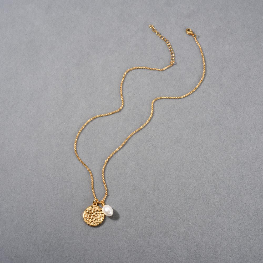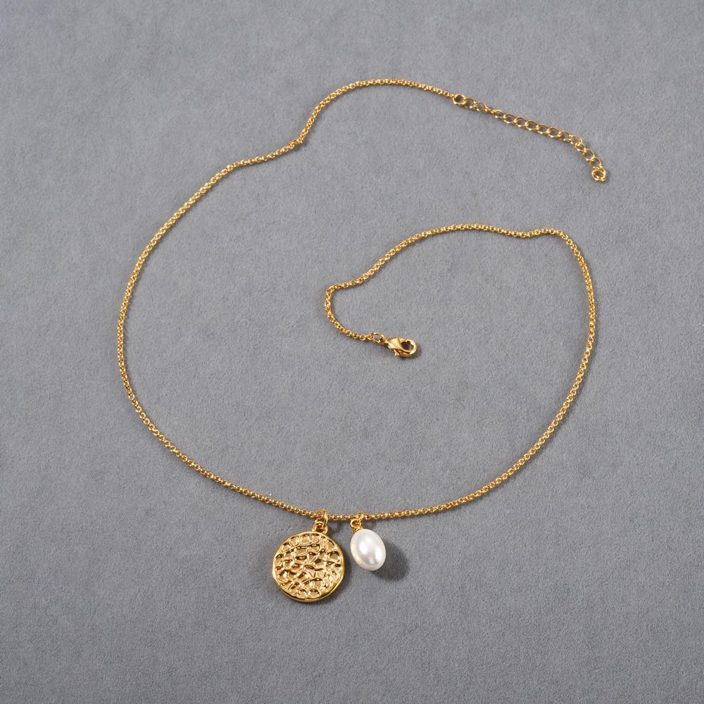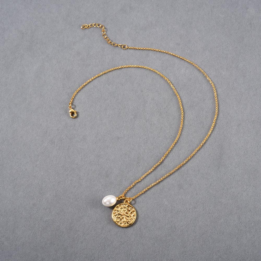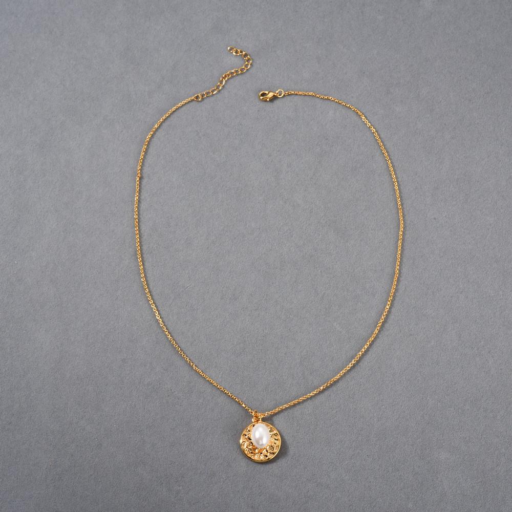 Compra Collar con colgante de perla redonda simple estilo Ins europeo y americano, chapado en oro real de 18 quilates, collar de marca, clavícula simple y versátil al por mayor en Joom.pro