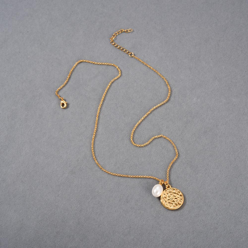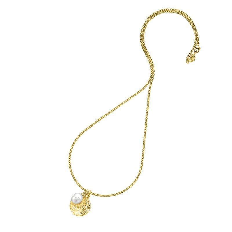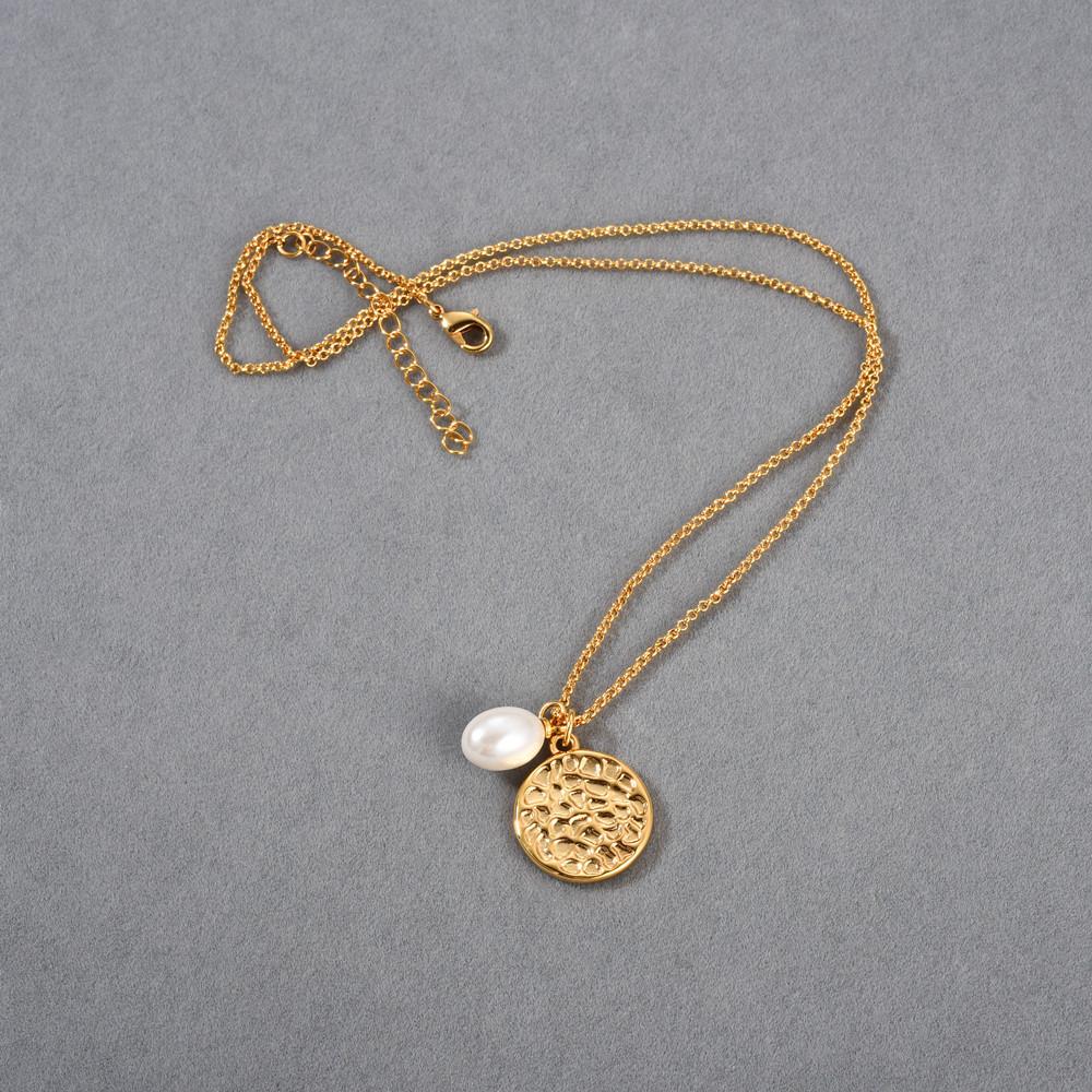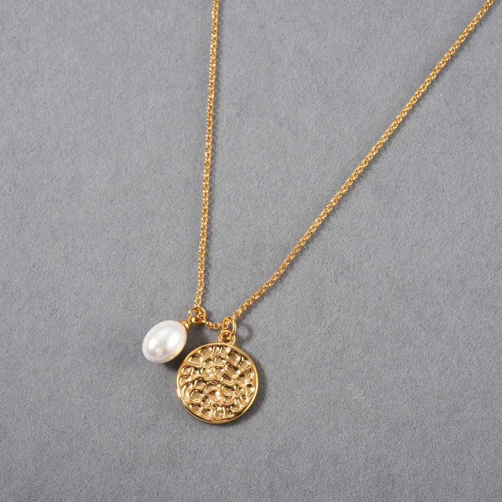 Compra Collar con colgante de perla redonda simple estilo Ins europeo y americano, chapado en oro real de 18 quilates, collar de marca, clavícula simple y versátil al por mayor en Joom.pro
