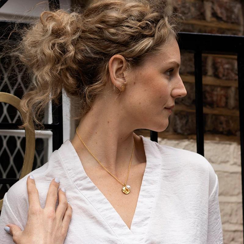 Material: Latón bañado en oro auténtico de 18 quilates + perla.