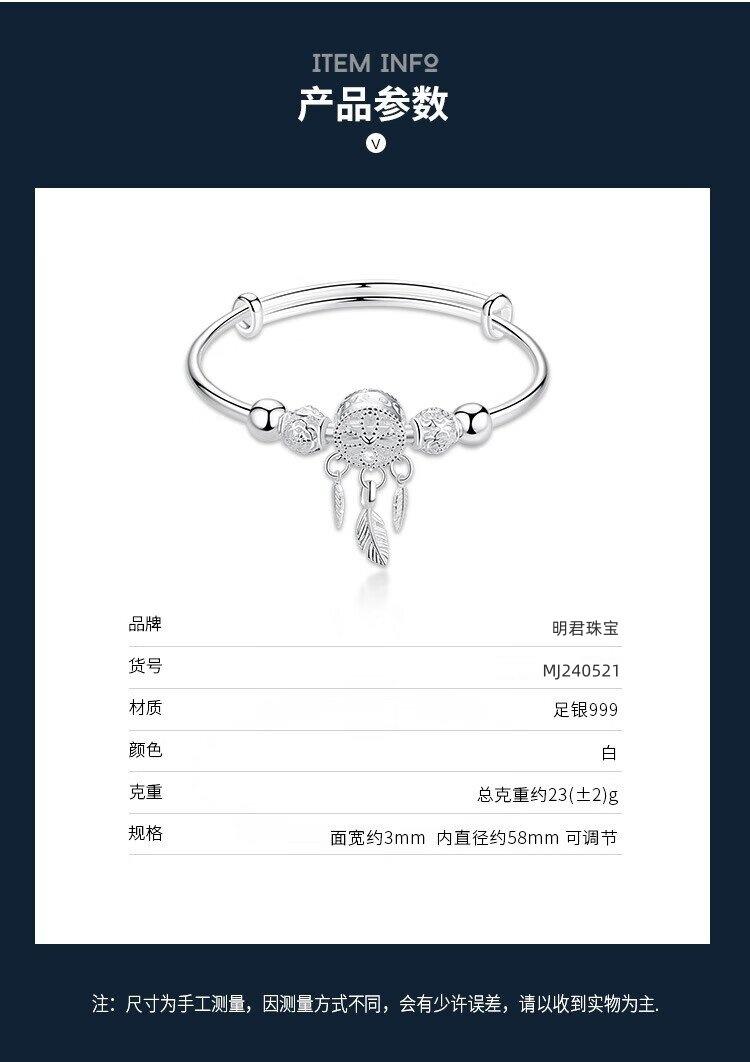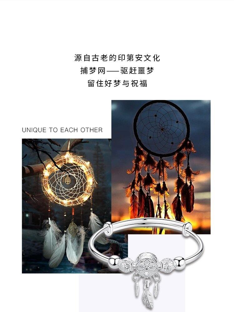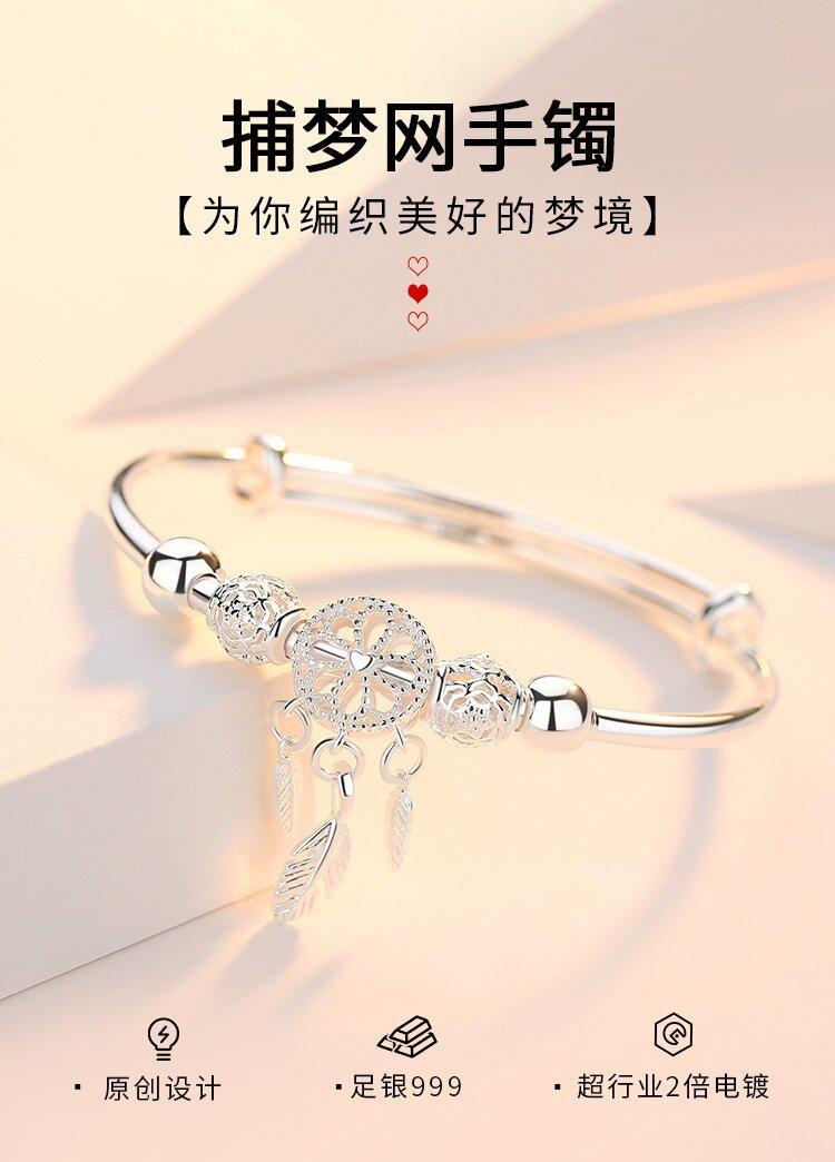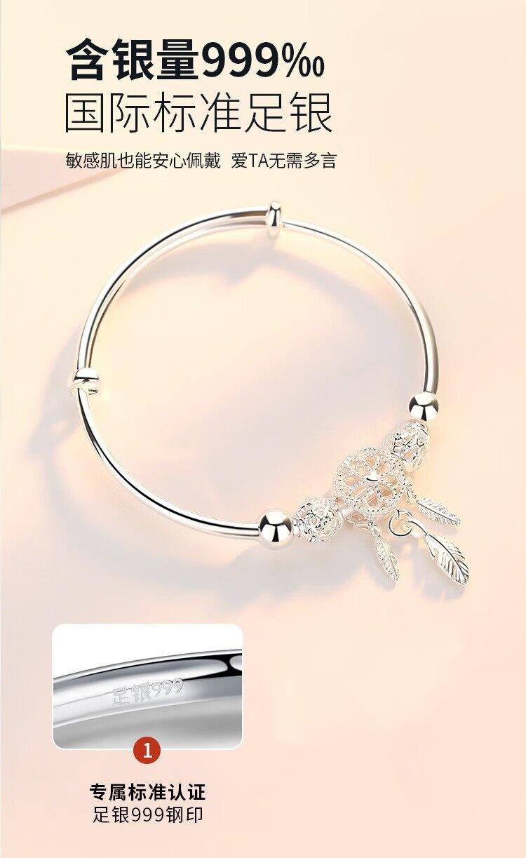 Pulsera de plata de ley S999 con atrapasueños para mujer, regalo 520 para novia joven.