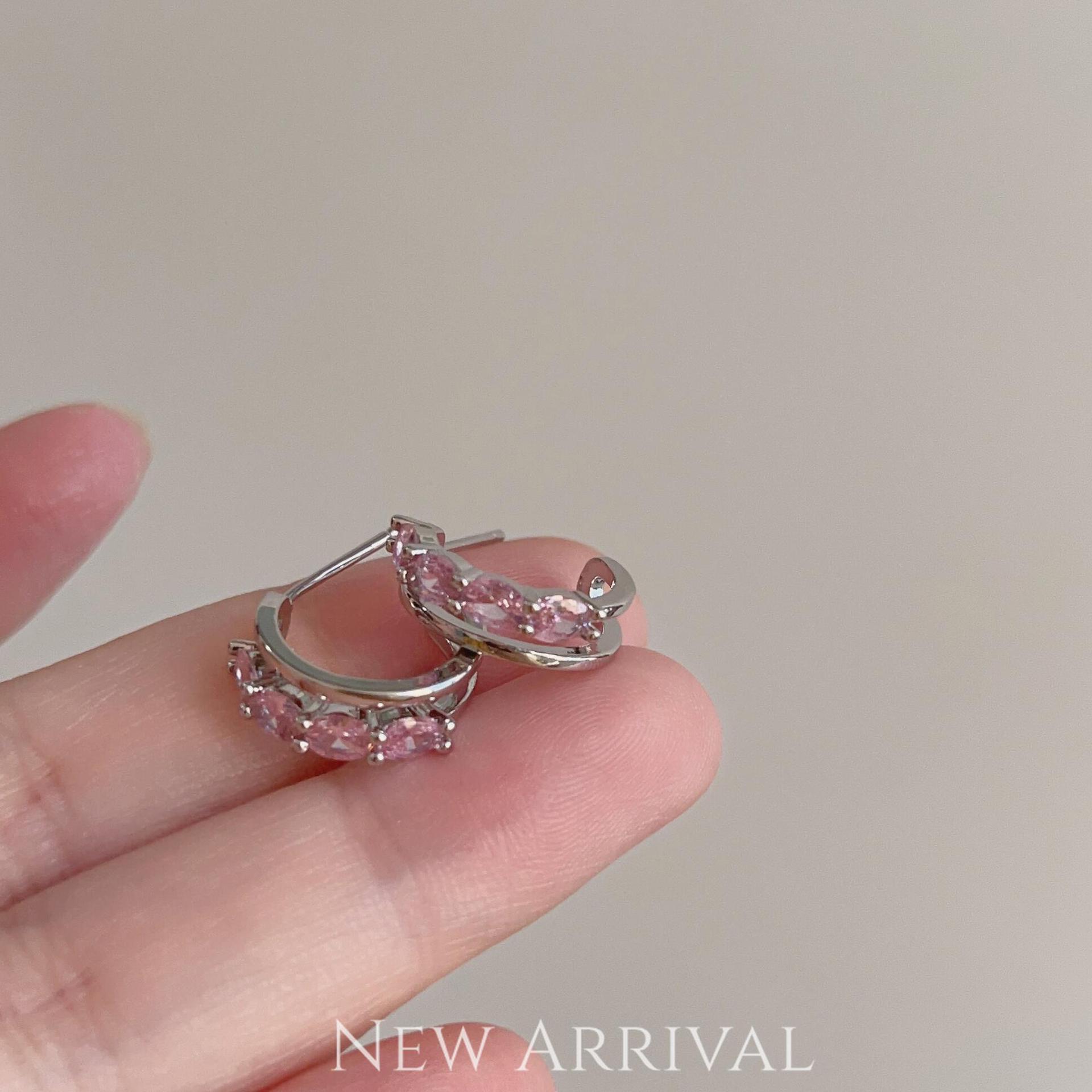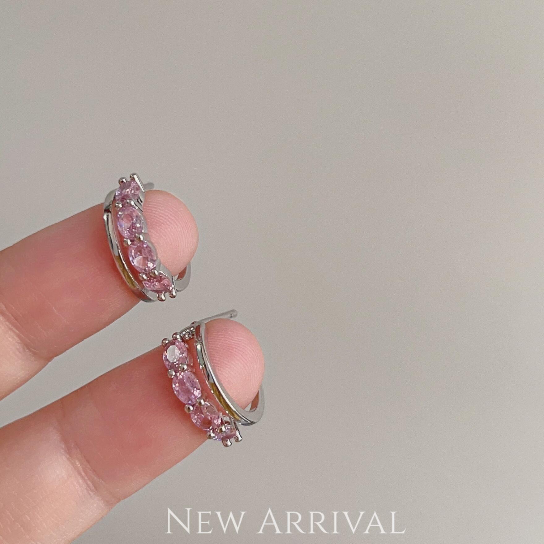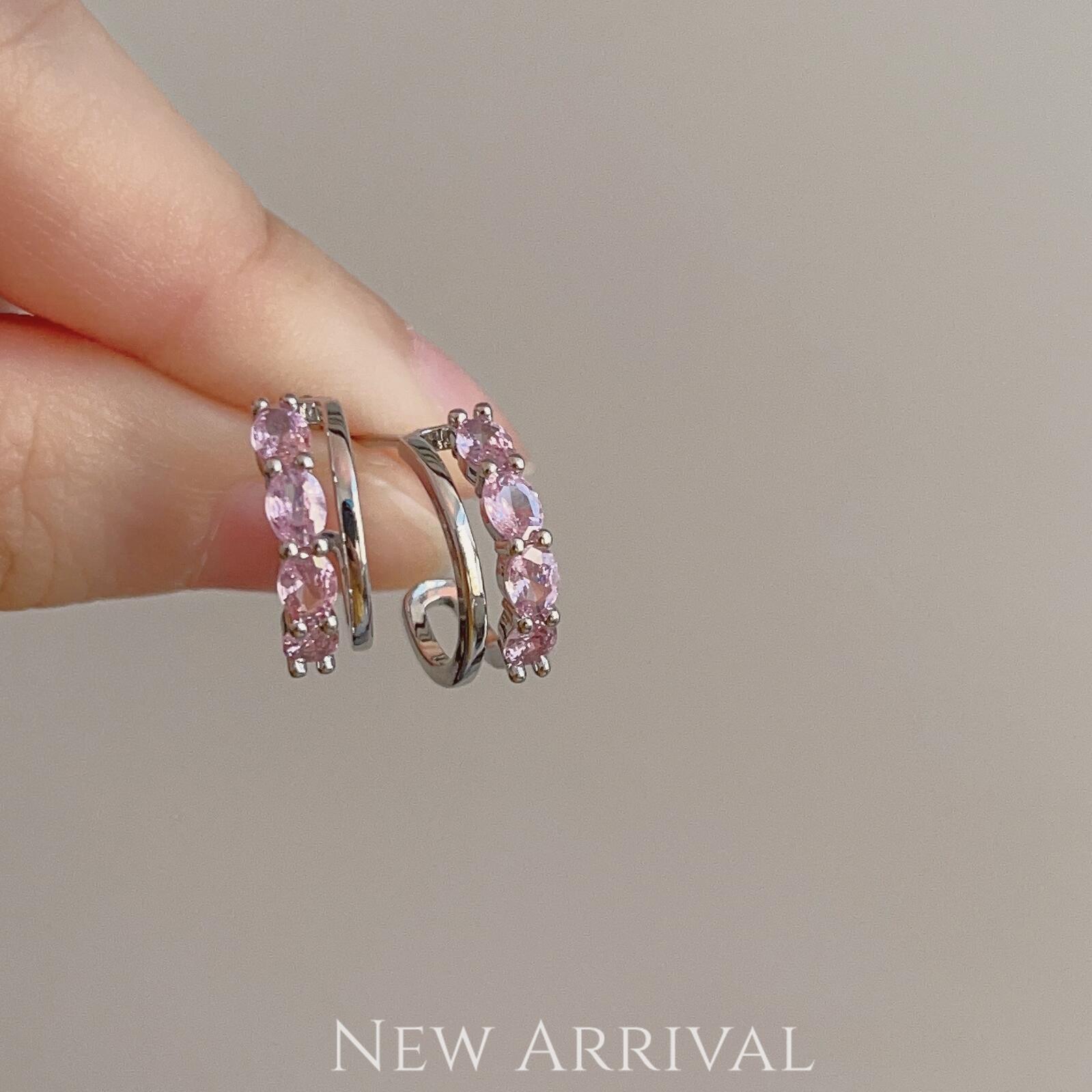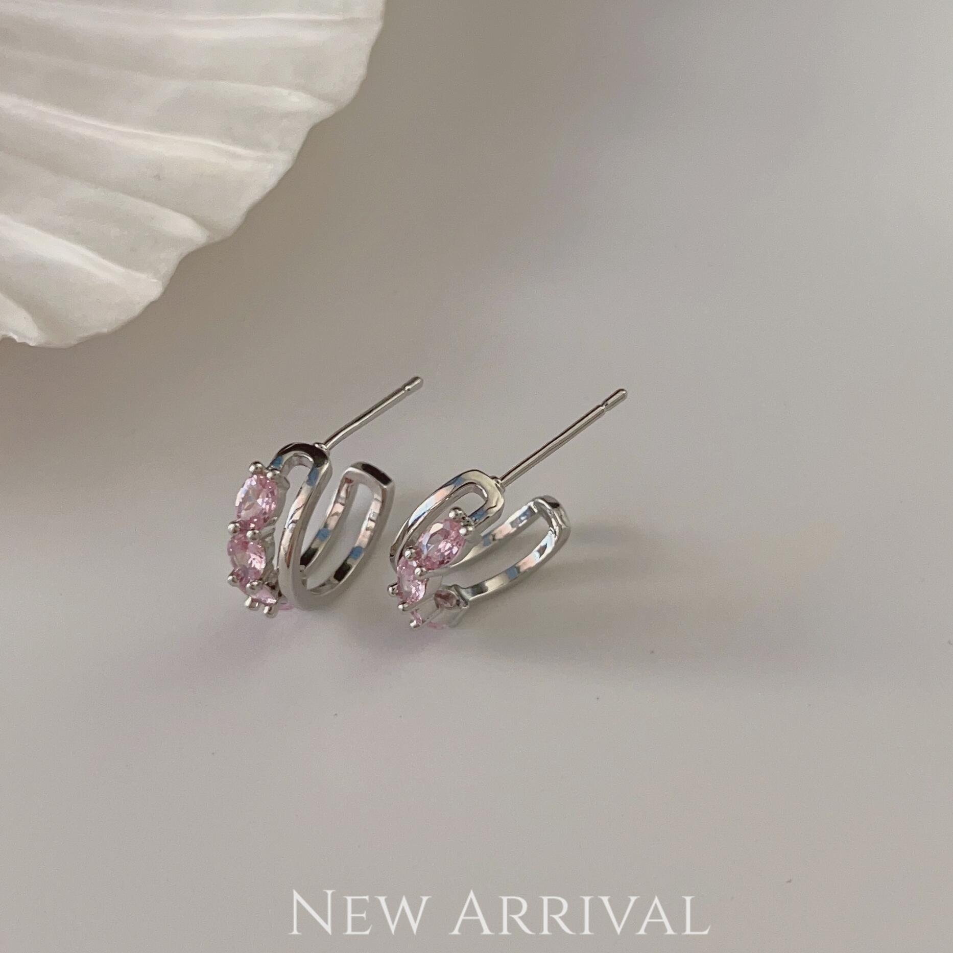 Dulces aretes rosas de doble capa en forma de C que rejuvenecen. Aretes de lujo ligero y alta gama. Nuevos aretes de moda para mujer. Aretes de aguja de plata.