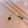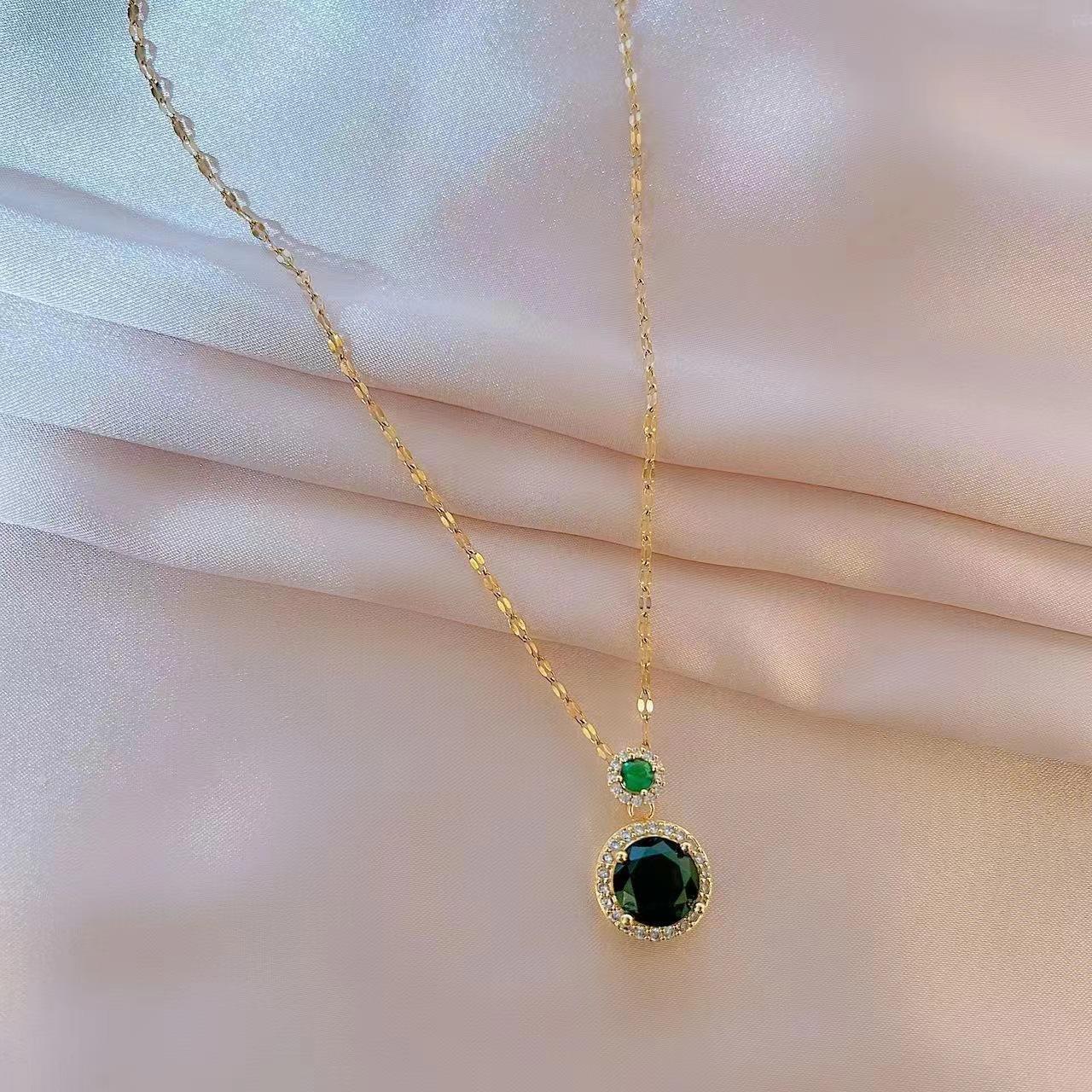 Collar de acero de titanio de moda, pendientes, colgante redondo verde, cadena de clavícula vintage, joyería de alta calidad, collar de nicho ligero de lujo