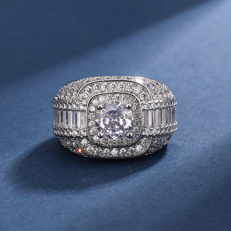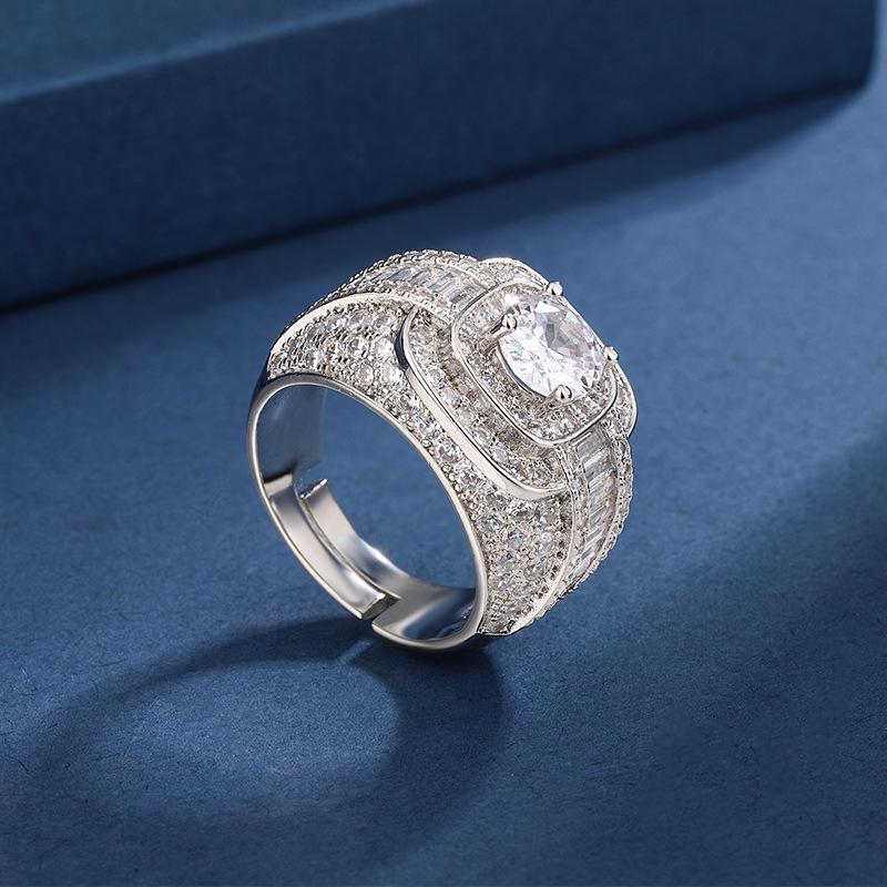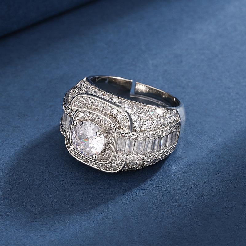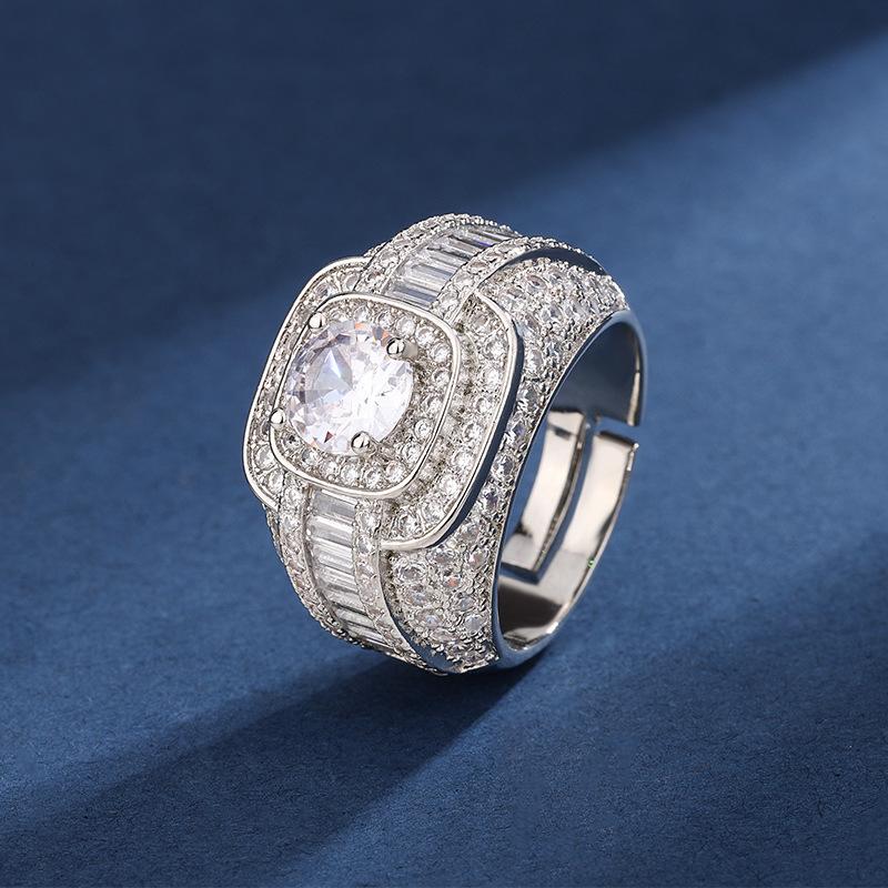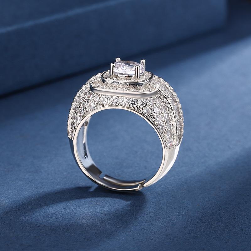 Venta caliente europea y americana, grupo transfronterizo con incrustaciones de diamantes completos, anillo de 1 quilate, temperamento femenino, anillo de boda de lujo de alta gama que combina con todo, al por mayor