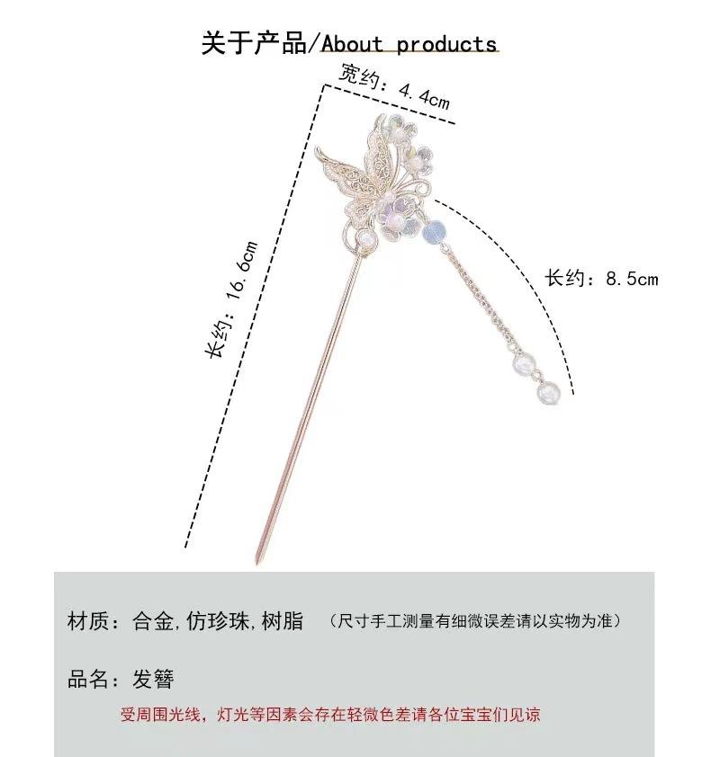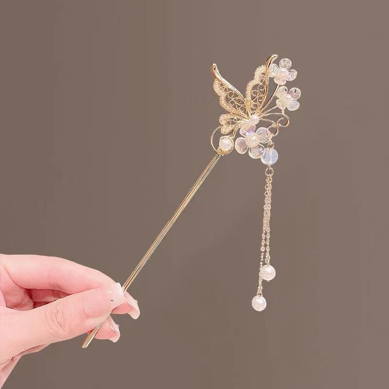 Horquilla antigua con forma de mariposa, flor de amor, perla y borla, placa Hanfu, horquilla para el cabello, temperamento, horquilla de alta gama, accesorios para el cabello