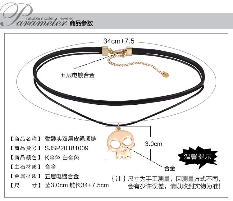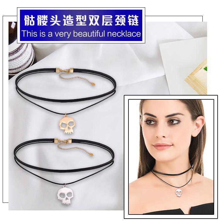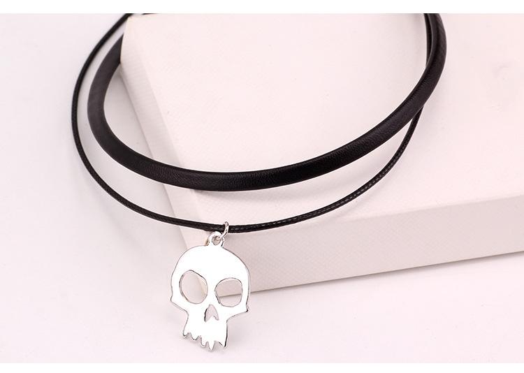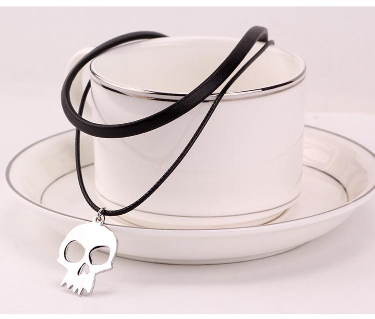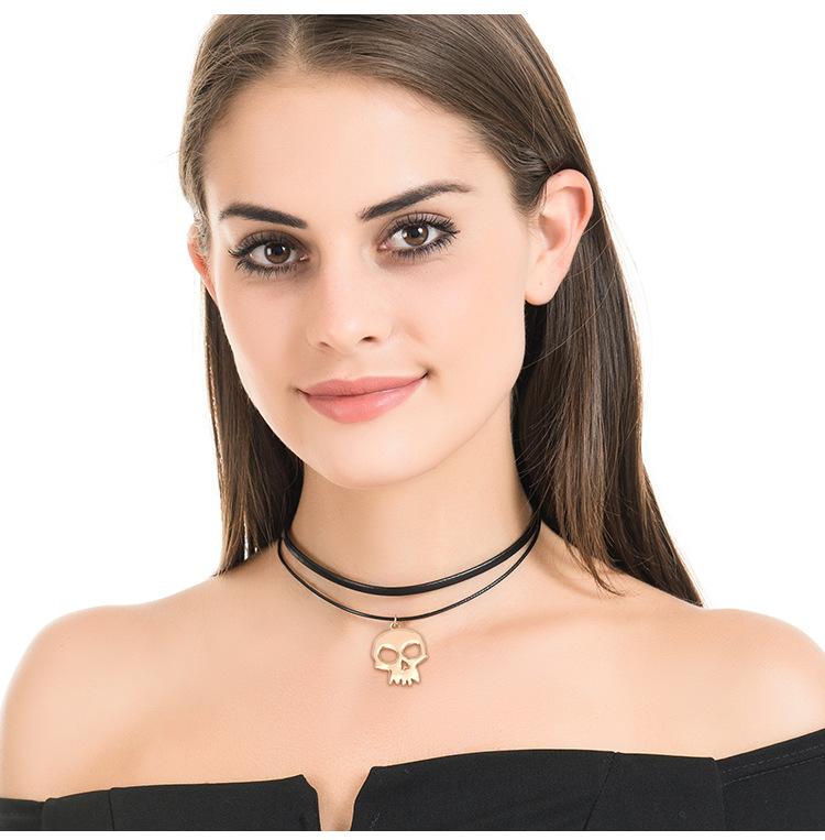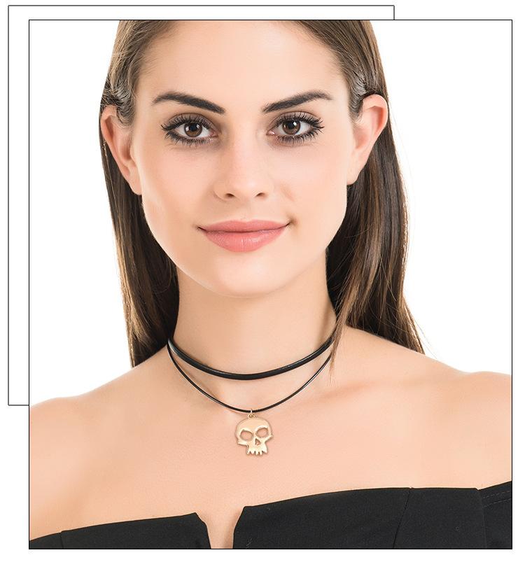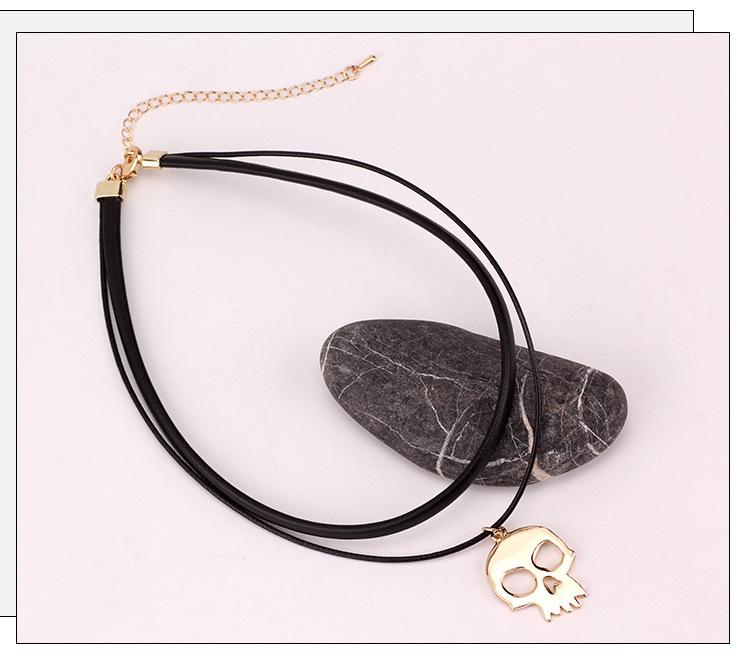 Compra Gargantilla coreana para mujer, collar de cuerda de cuero negro, cadena de clavícula, joyería de cuello corto, collar de cadena con cabeza de fantasma al por mayor en Joom.pro