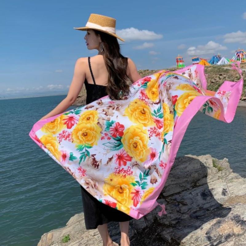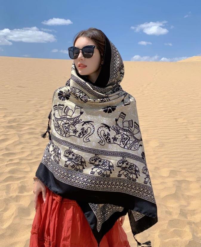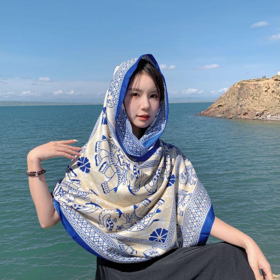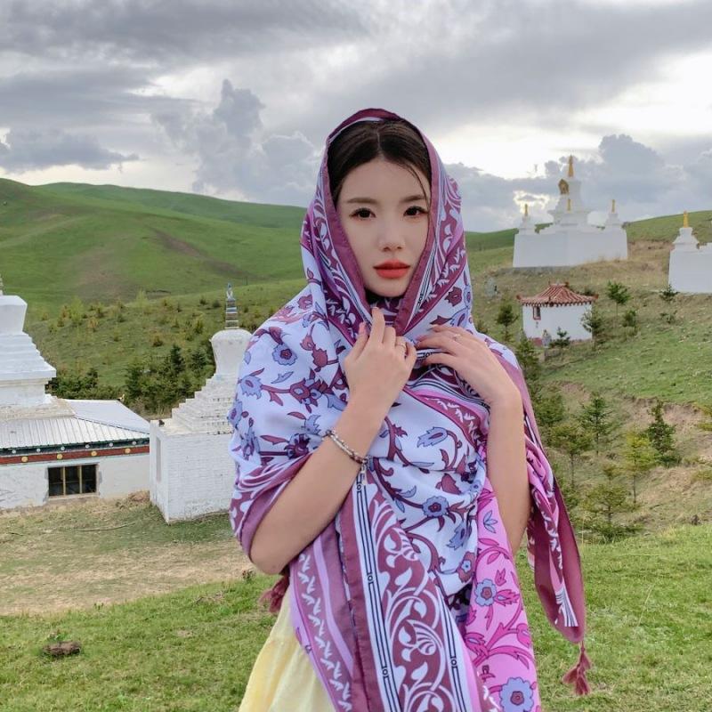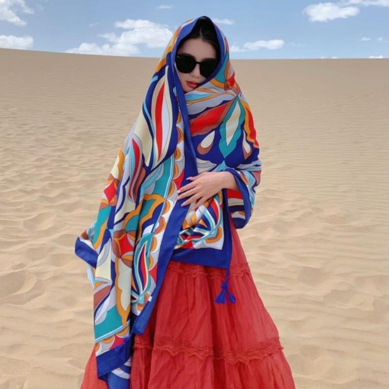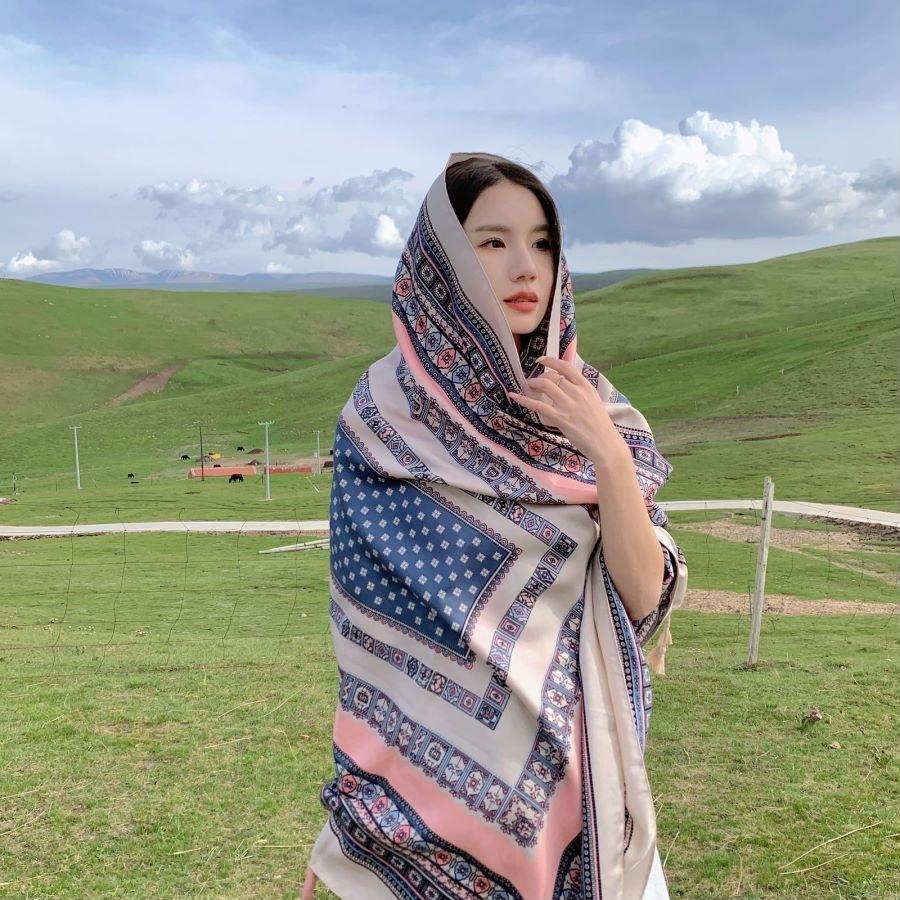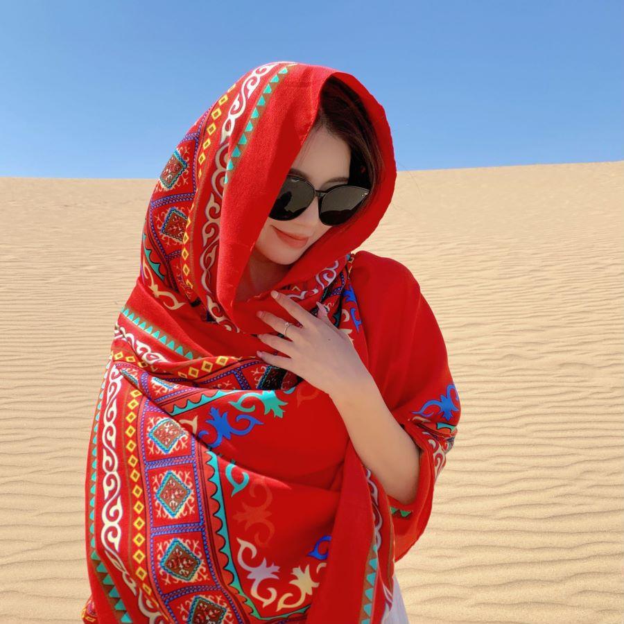 Compra Bufanda estilo étnico, chal, doble uso, protección solar, playa, color rojo, color liso, para mujer, foto de viaje de Yunnan al por mayor en Joom.pro
