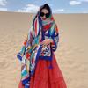 Bufanda estilo étnico, chal, doble uso, protección solar, playa, color rojo, color liso, para mujer, foto de viaje de Yunnan