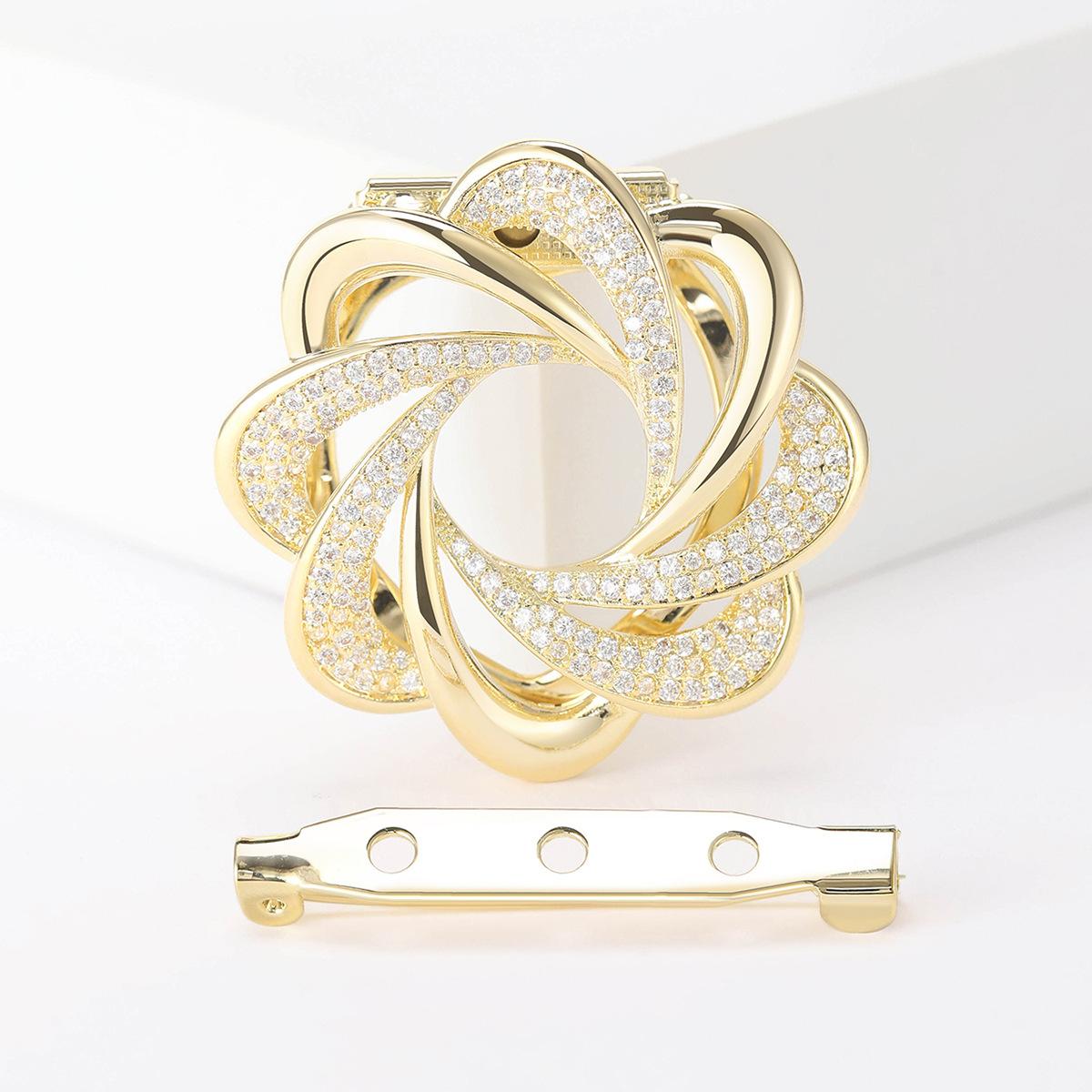 Nuevo broche de flor con microincrustaciones de circonita de cobre creativo de moda transfronteriza europea y americana, accesorio de ropa de alta gama, broche, hebilla de bufanda de seda