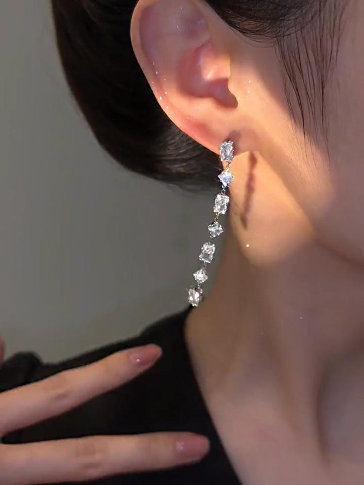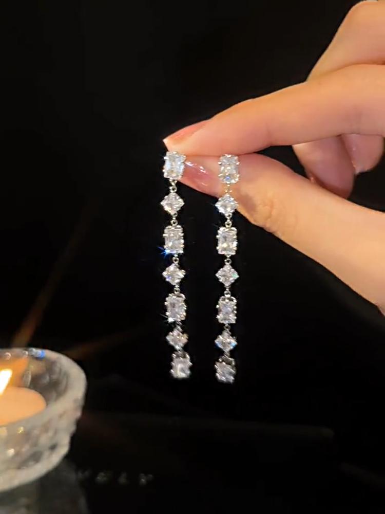 Pendientes de borla de circonita de lujo, elegantes, sencillos y de estilo moderno, con un diseño retro que combina con todo.