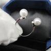 Anillo abierto simple doble ajustable de moda de plata de ley 925, elegante anillo con personalidad, accesorios de perlas para mujer, joyería