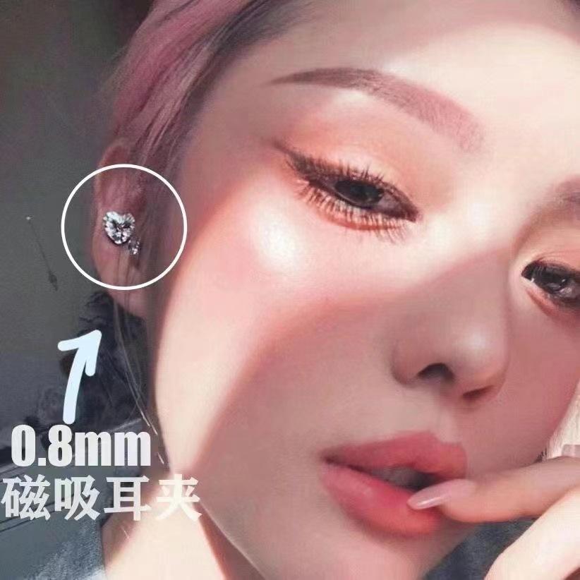 Clip magnético para oreja con circonitas de amor que combina con todo. Ins wind, circonita ultra brillante, agujero sin oreja, clavo para oreja, taladro brillante que combina con todo, clip para hueso de oreja.