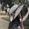 Azul Oscuro y Azul Claro Estilo Étnico Retro Viaje Exterior Senderismo Sombrero Verano Parasol Sombrero de Cubo Sombrero de Vaquero