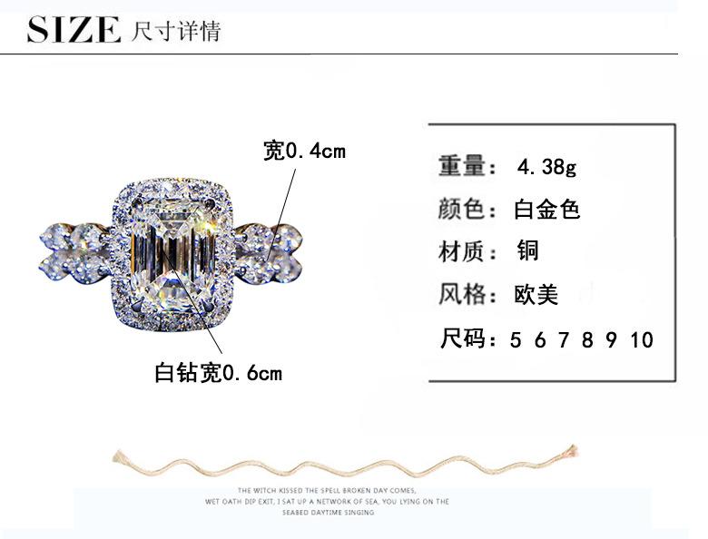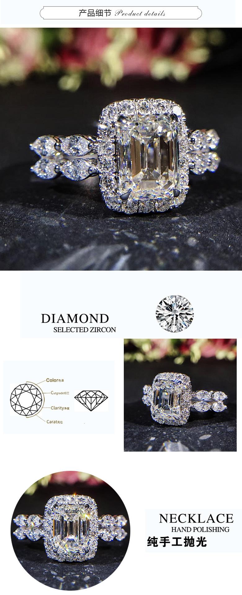 Zhen Rong desea el mejor venta nuevo anillo de imitación de circón cuadrado de princesa, propuesta de boda, anillo de boda femenino con diamantes en forma de quilates