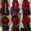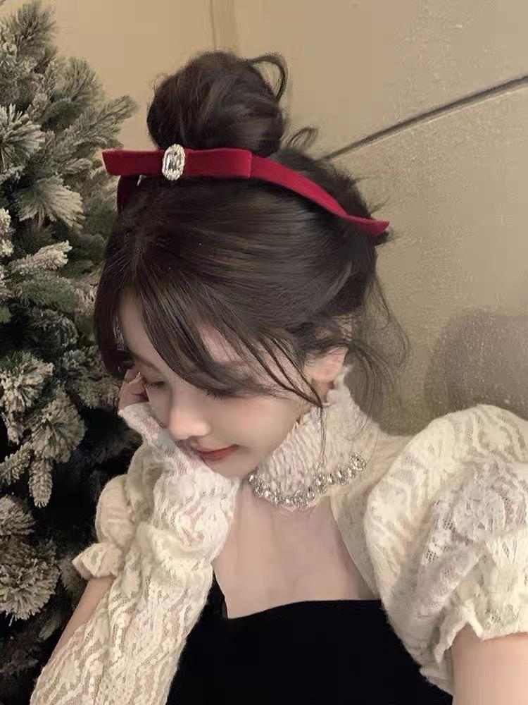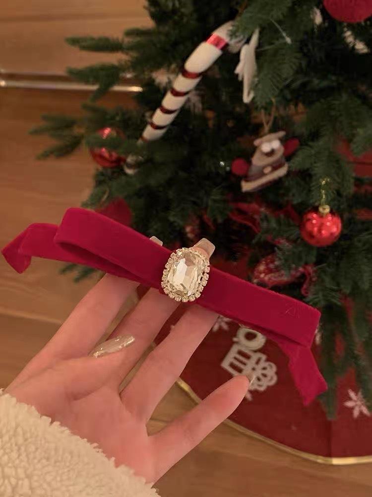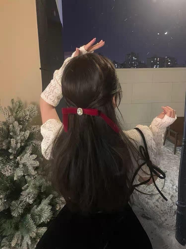 Horquilla de lazo de terciopelo rojo de Año Nuevo para mujer, tocado con lazo en la parte trasera para el cabello, accesorios para el cabello con clip superior de alta calidad para otoño e invierno