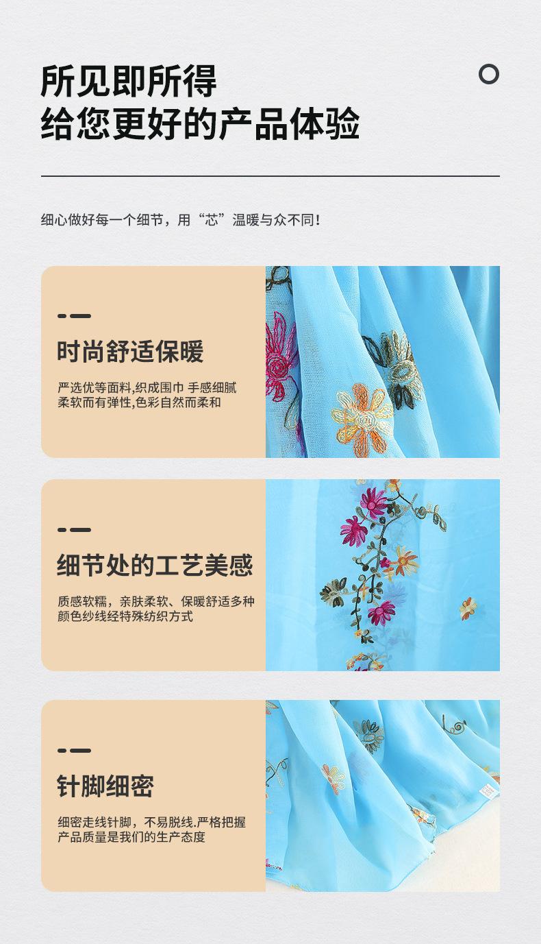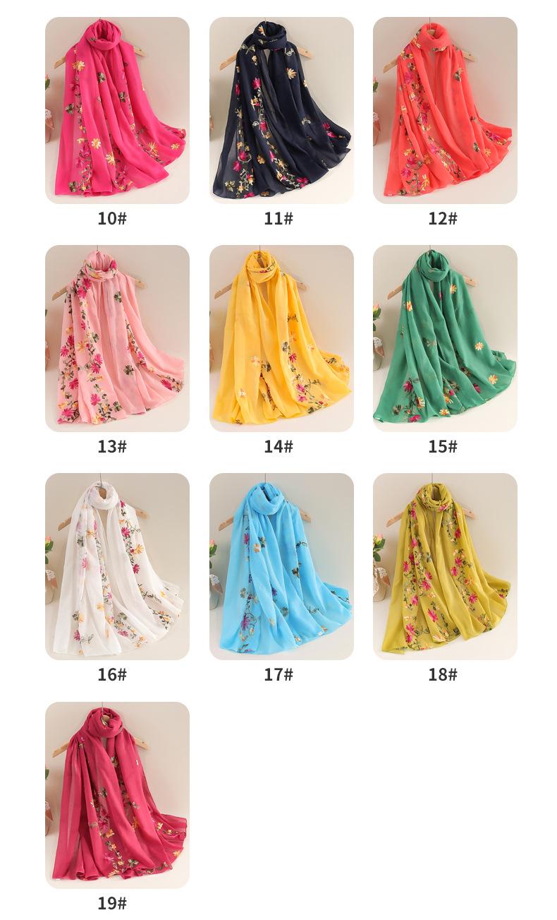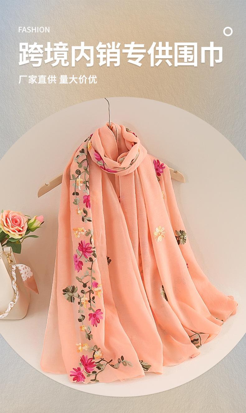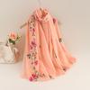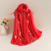 Bufanda de algodón y lino bordada estilo étnico protector solar de algodón para mujer bufanda de alta calidad Amazon retro bufanda larga grande chal