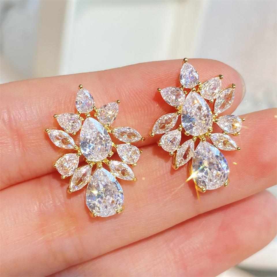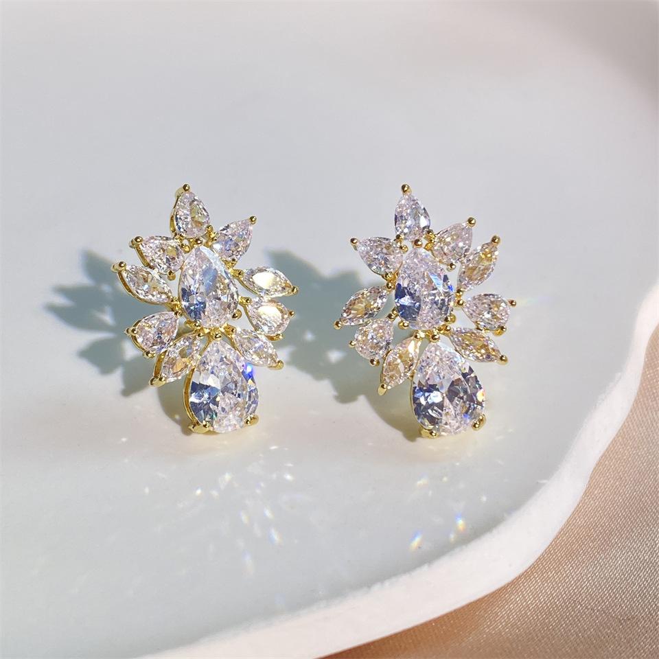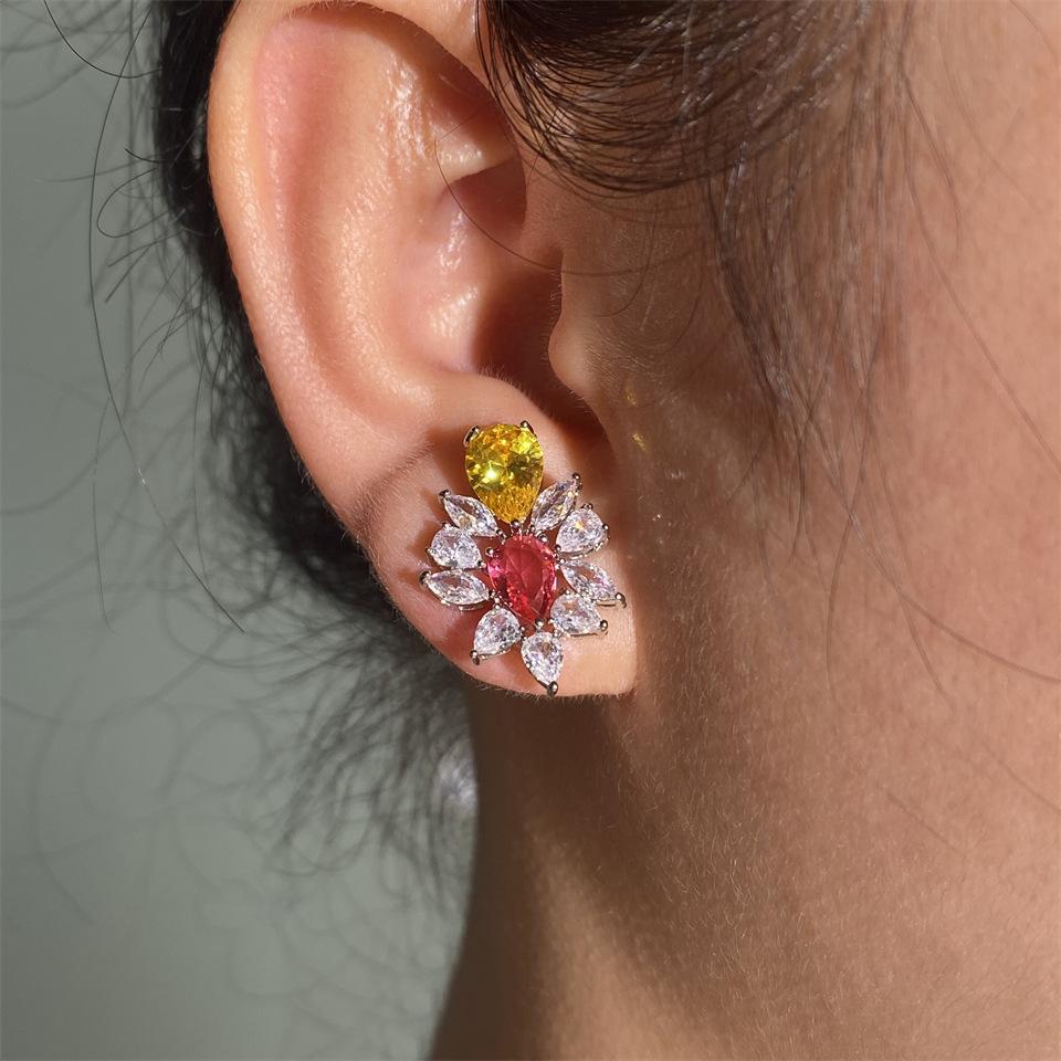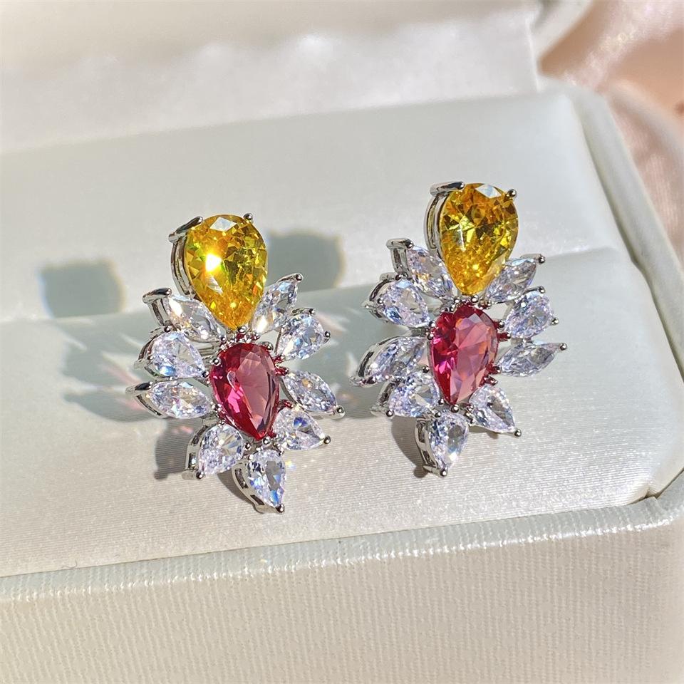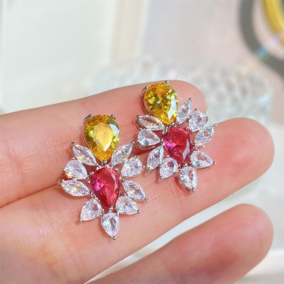 RAKO - Pendientes de circonita colorida con forma de ojo de caballo, estilo retro, ligero, geométrico, de lujo, estilo europeo y americano, para mujer