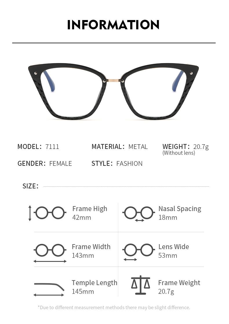 Compra Montura de gafas de moda europea y americana transfronteriza 7111 ojo de gato gafas planas para mujer montura de gafas TR90 anti-luz azul al por mayor al por mayor en Joom.pro