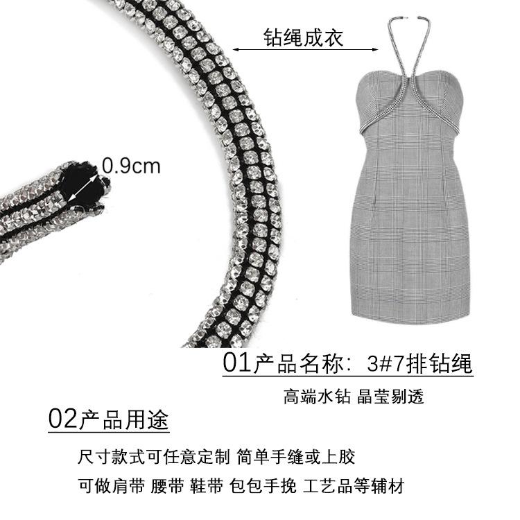 Red de Suministro Transfronterizo Diamante 3mm Cuerda de Pedrería de 7 Filas Correa de Hombro Cinturón Cuerda de Pedrería Bolsa Muñeca Accesorios de Ropa Joyería DIY