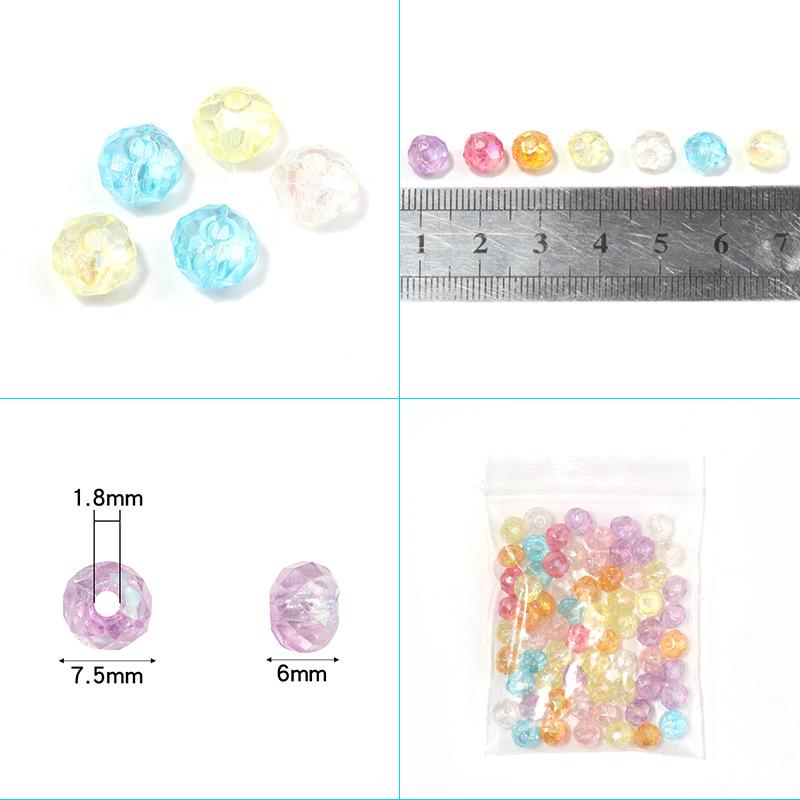 | Especificación: | Cuentas planas facetadas de acrílico en forma de diamante, diámetro de aproximadamente 7,5 mm, grosor de aproximadamente 6 mm, tamaño de poro de aproximadamente 1,8 mm, cada paquete de 100 piezas pesa aproximadamente 23 g | ||||