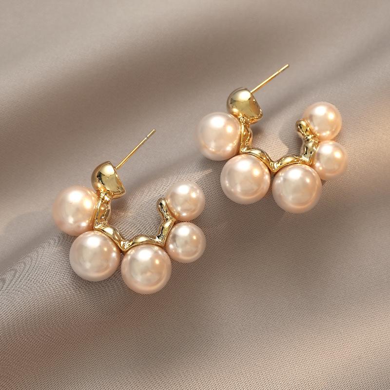 Pendientes de mujer con diseño de nicho simple en forma de C, pendientes dulces de perlas grandes de hada súper, temperamento frío al por mayor