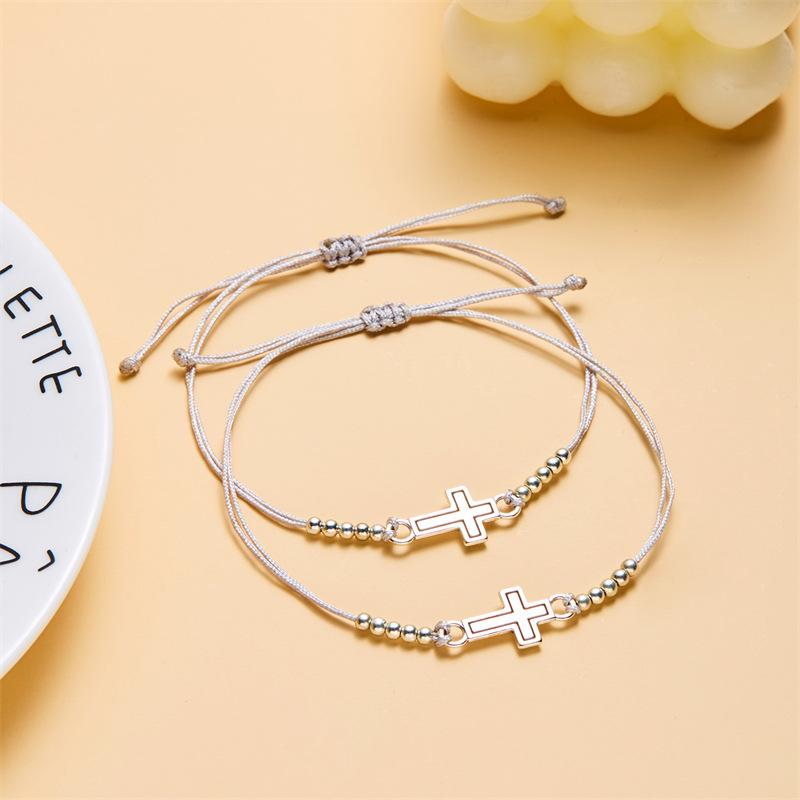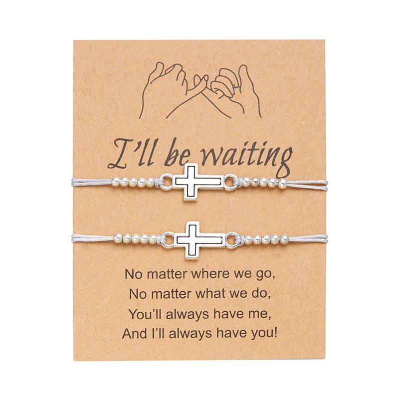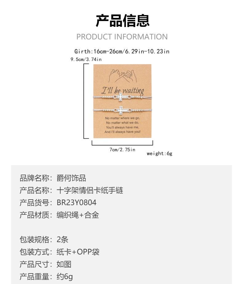 Joyería transfronteriza europea y americana Pulsera de pareja de Cruz Hueca dos piezas Pulsera sencilla de moda tejida a mano con tarjeta de papel