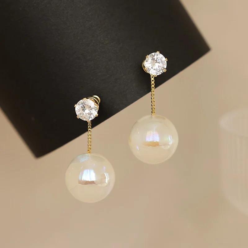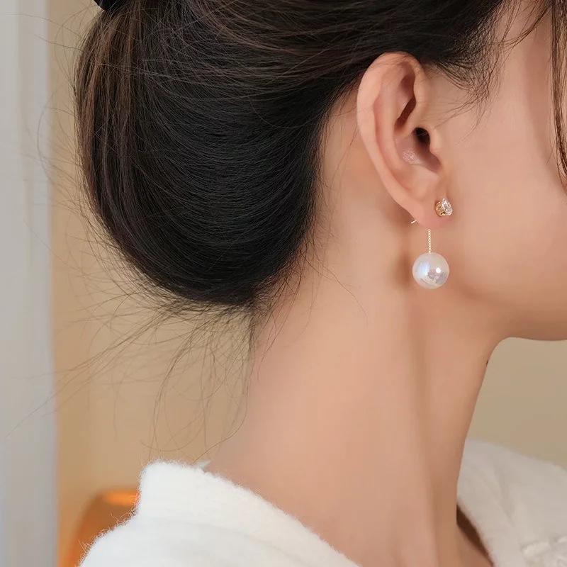 Nuevos pendientes de perlas de gran apariencia para mujer, sencillos y elegantes, estilo occidental, pendientes de celebridades de Internet, pendientes de aguja de plata S925