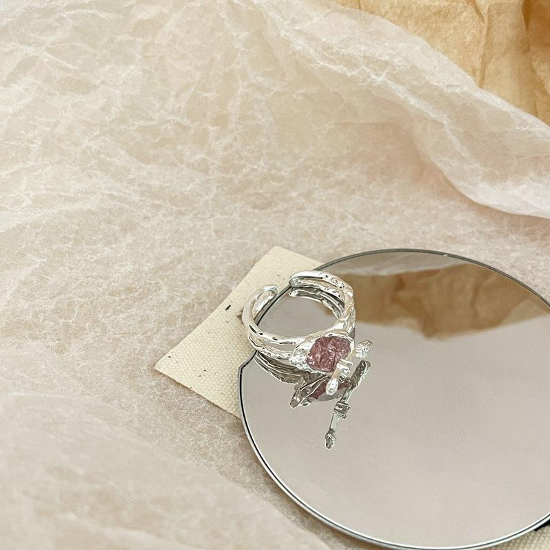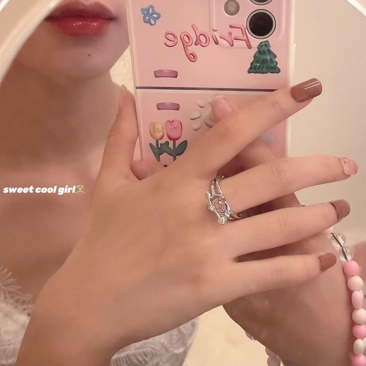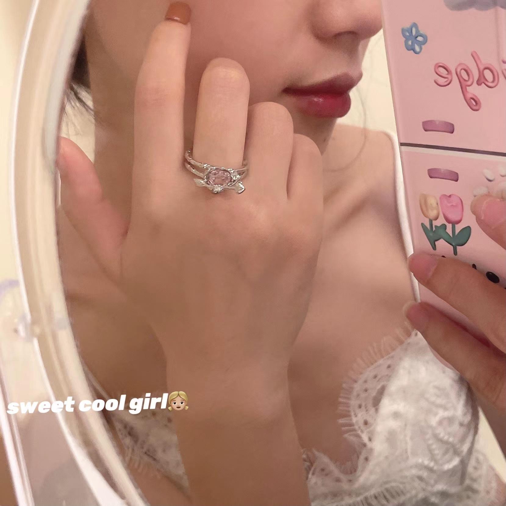 Anillo de Amor Corazón Femenino Rosa Anillo Nuevo 2025 Moda Pareja Una Flecha a través del Corazón Anillo para Novia
