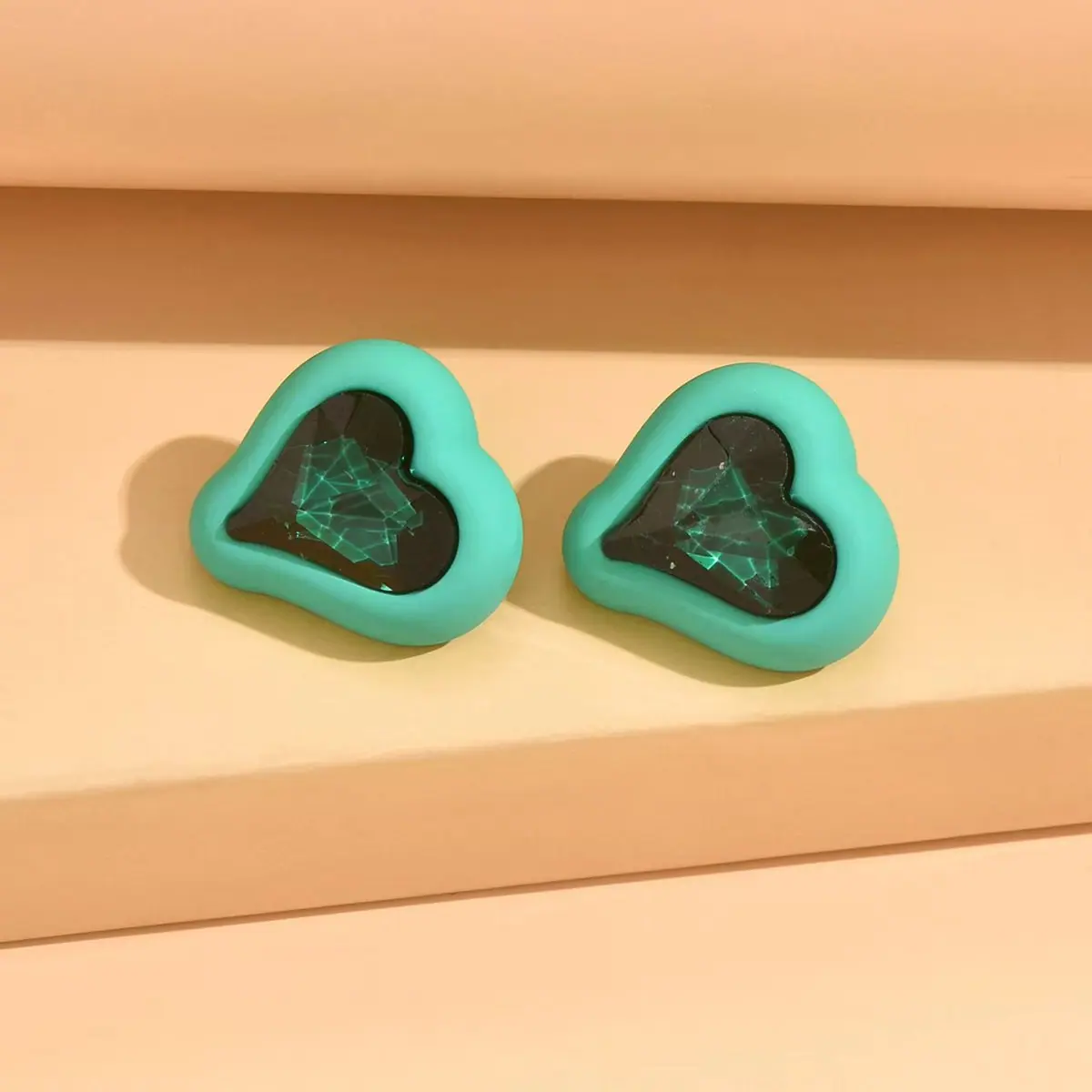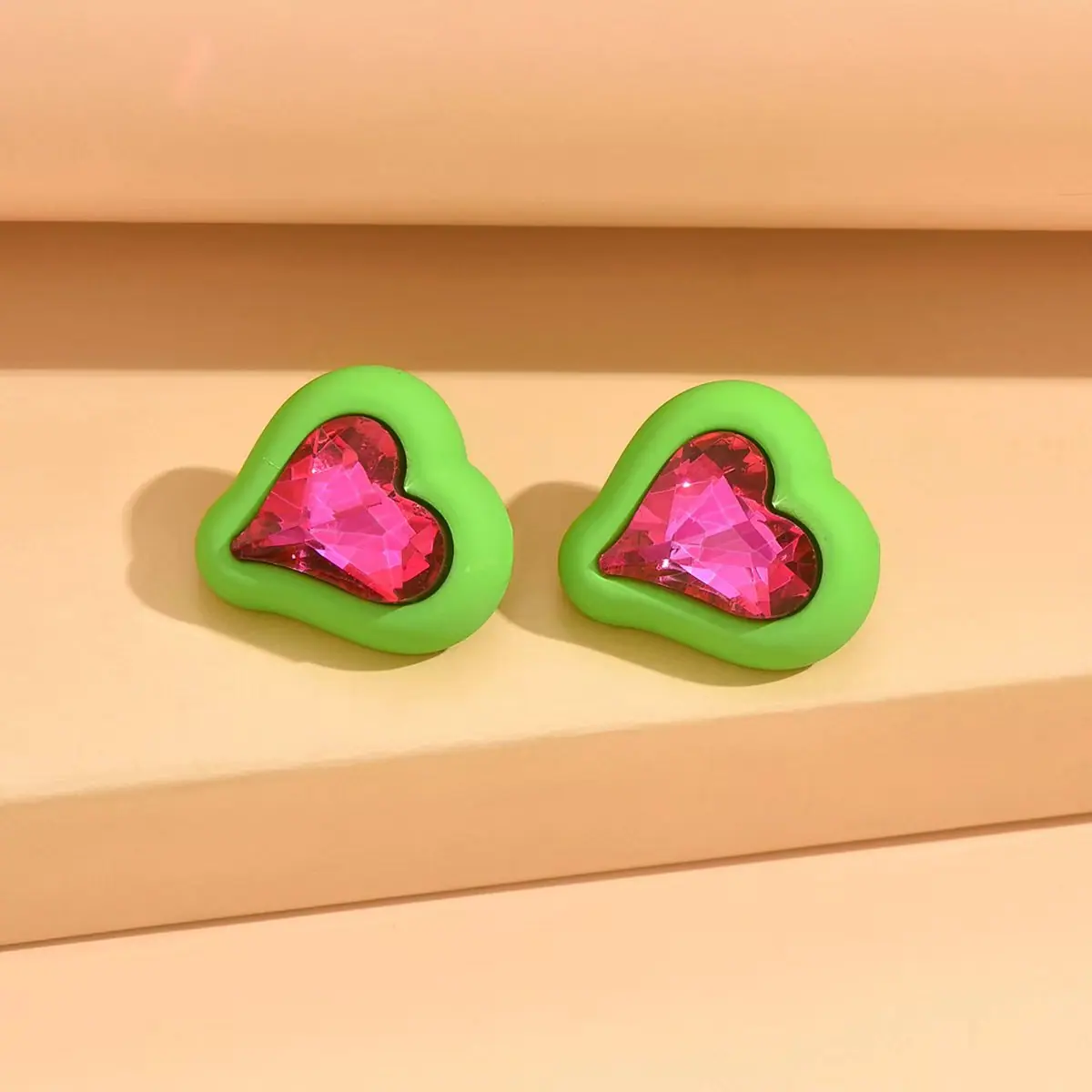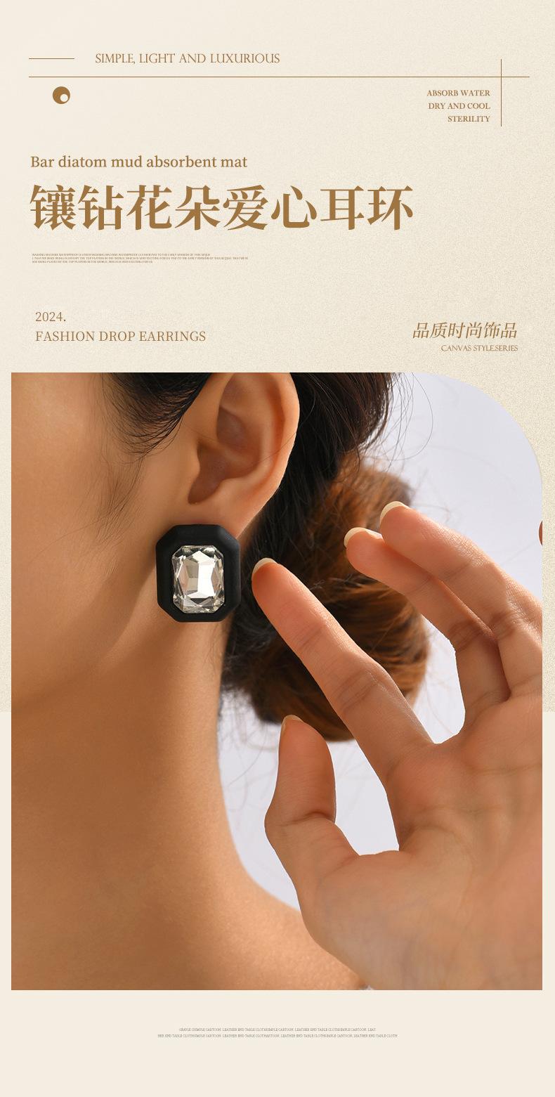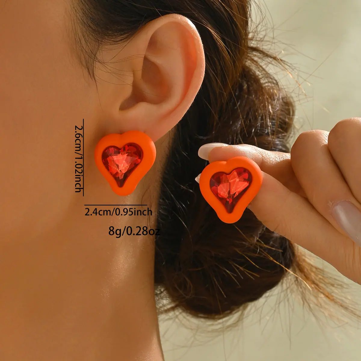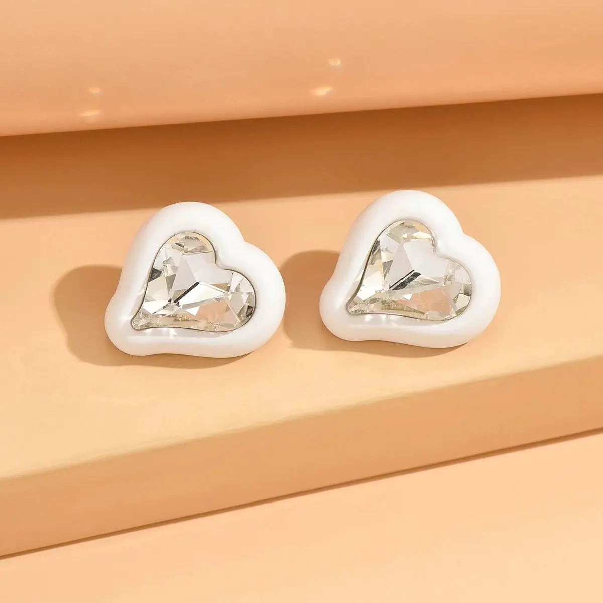 Nuevos pendientes transfronterizos de flores de diamantes de Amazon, pendientes de moda frescos y dulces, pendientes de corazón para niña linda.