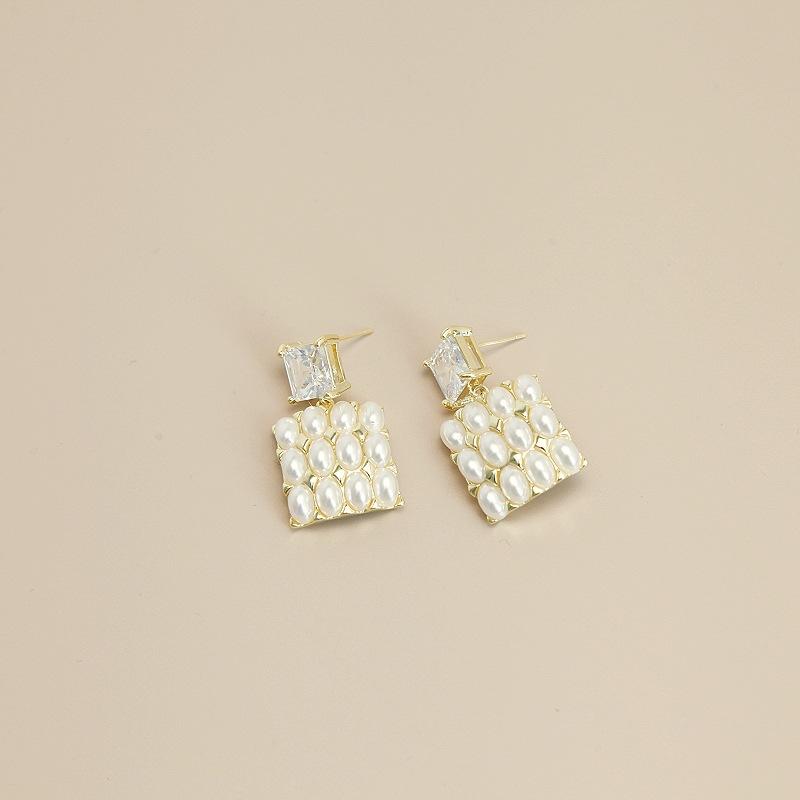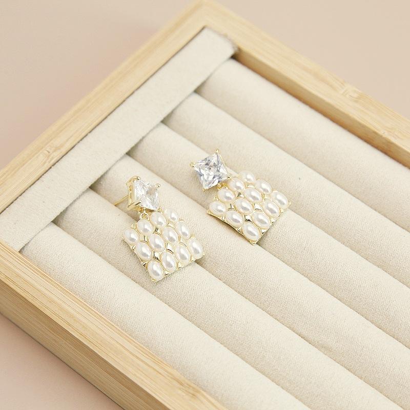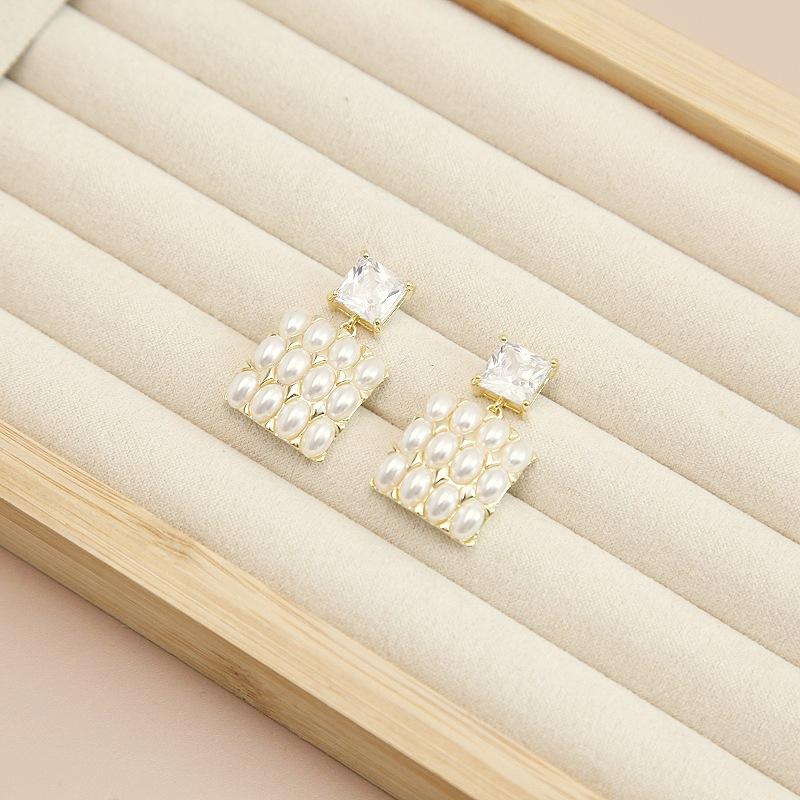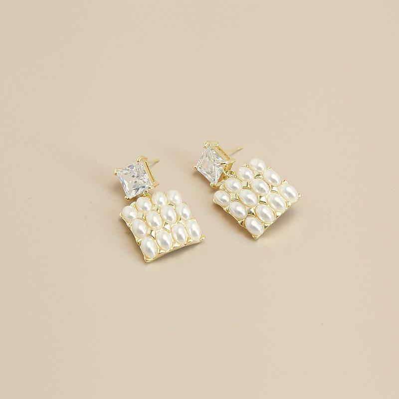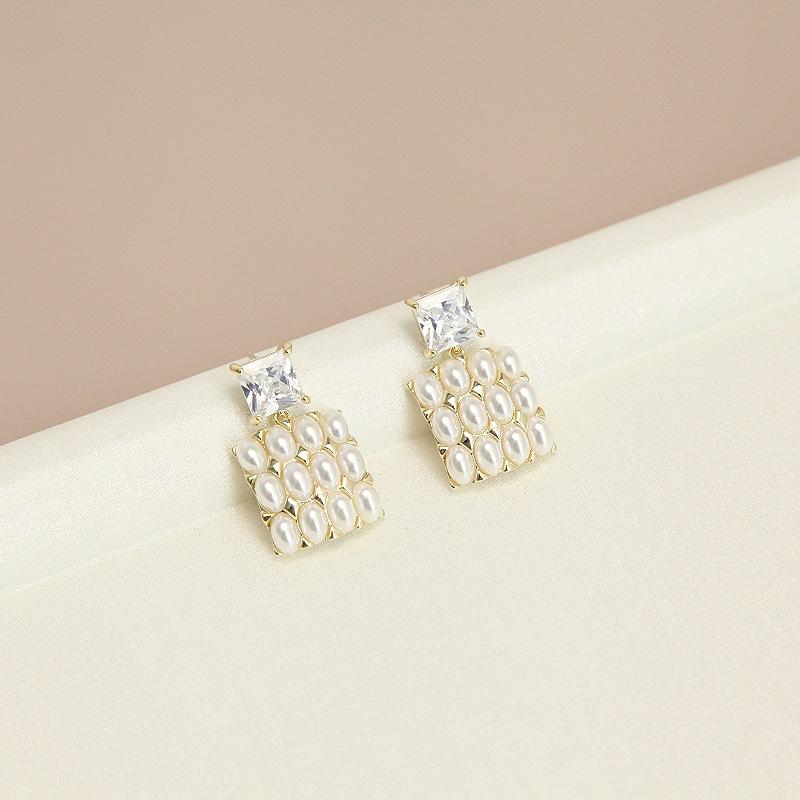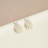 Pendientes de botón de circonita de lujo con luz dorada galvanizada, con microincrustaciones de perlas, combinables con todo, de moda, de alta calidad, de aguja de plata para mujer, al por mayor