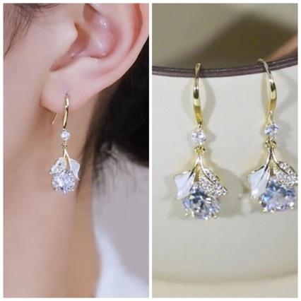 Diseño nicho exquisitos aretes de hoja de circonita para mujer 2024 nueva moda temperamento lujo ligero combinan con todo aretes de gancho