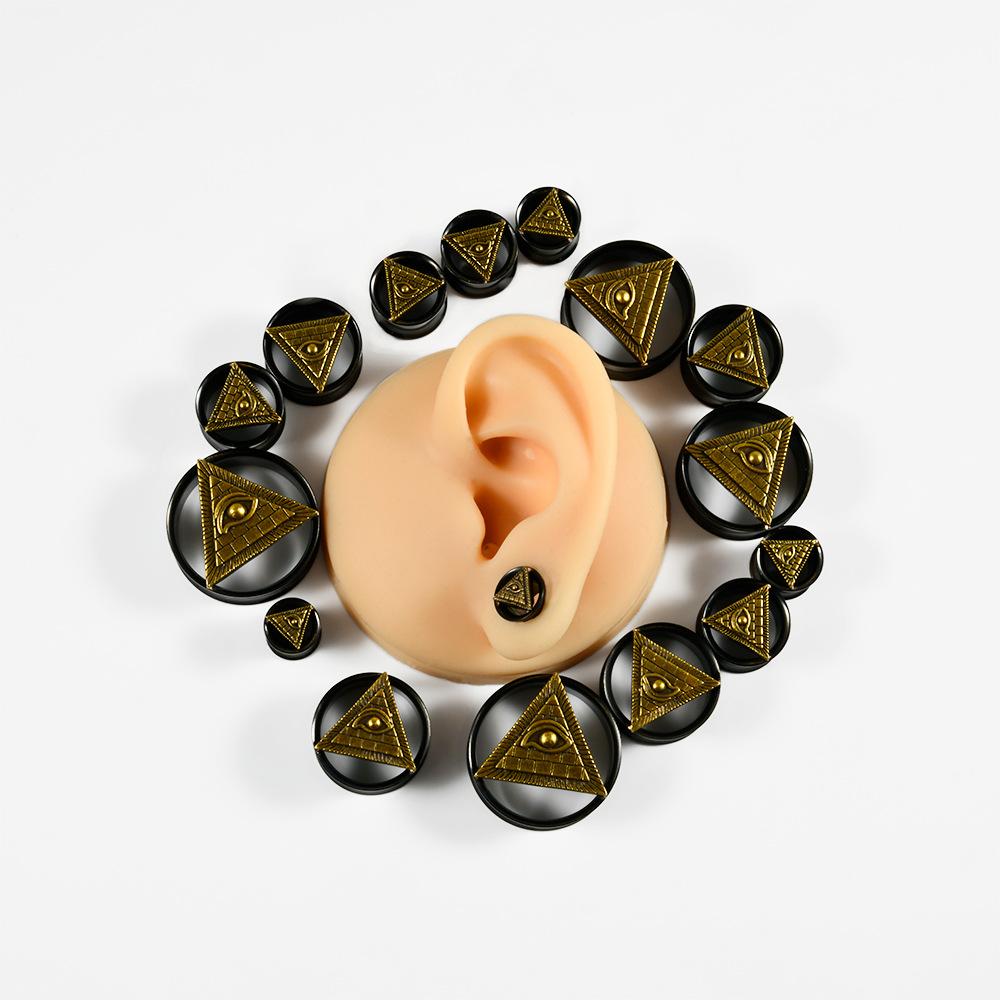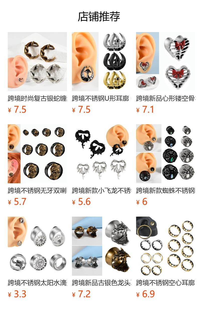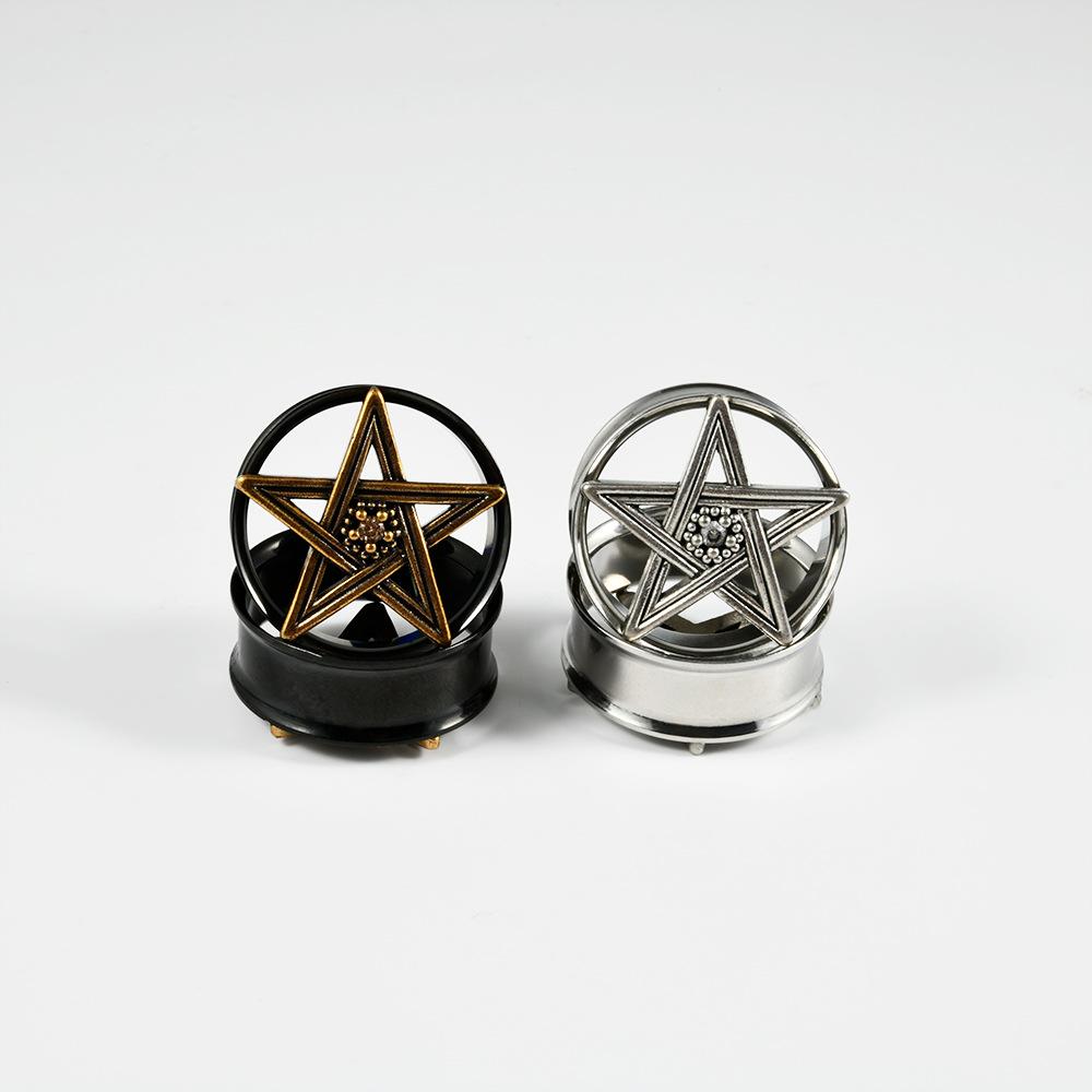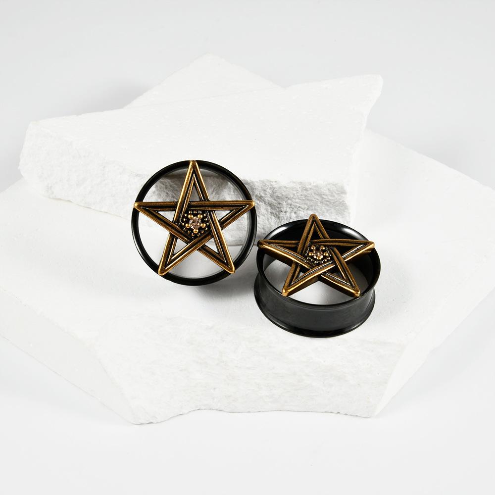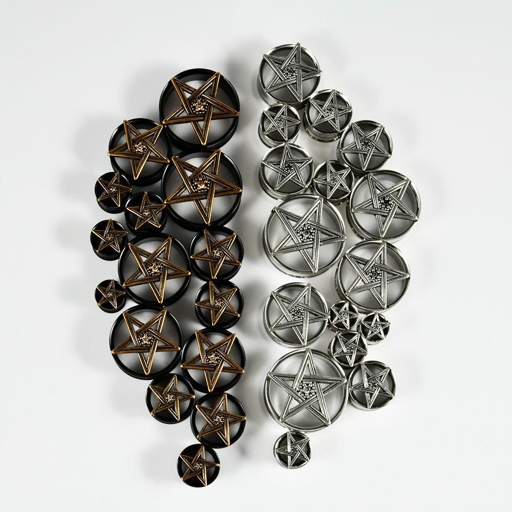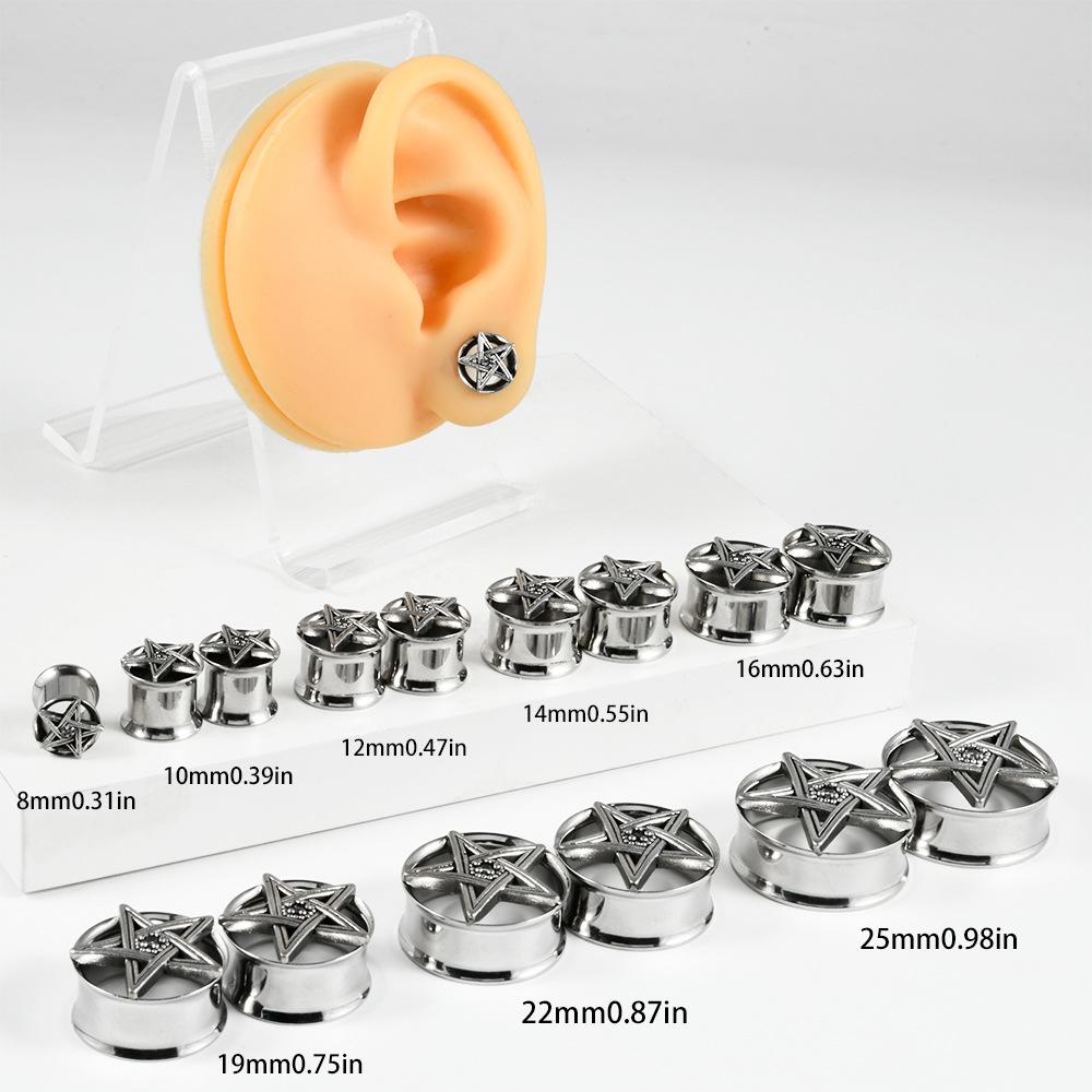 .Nombre: Pendientes de acero inoxidable transfronterizo de cinco estrellas con doble cuerno negro hueco ojo del diablo pendientes piercing 8-25mm