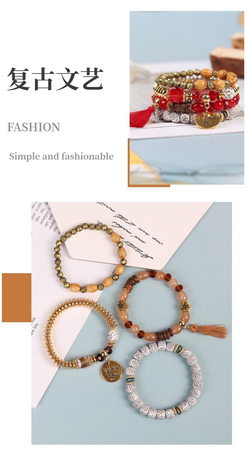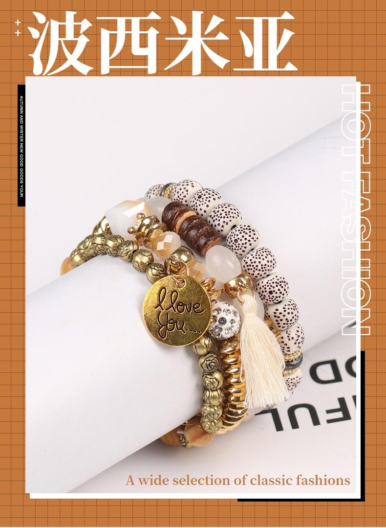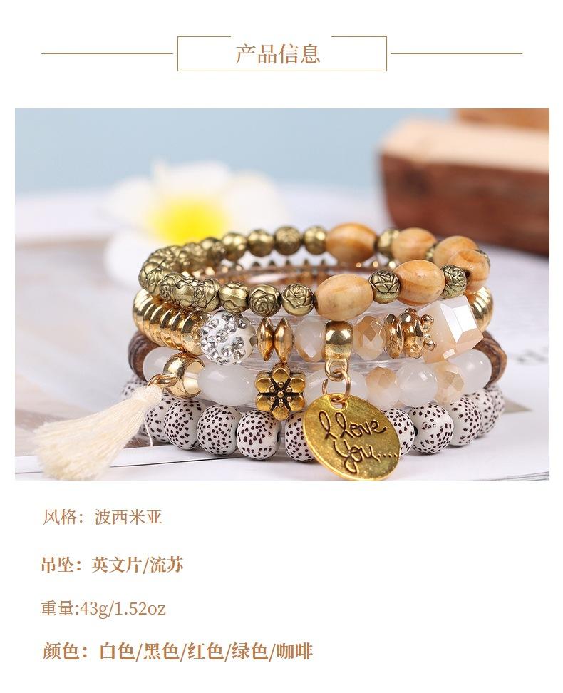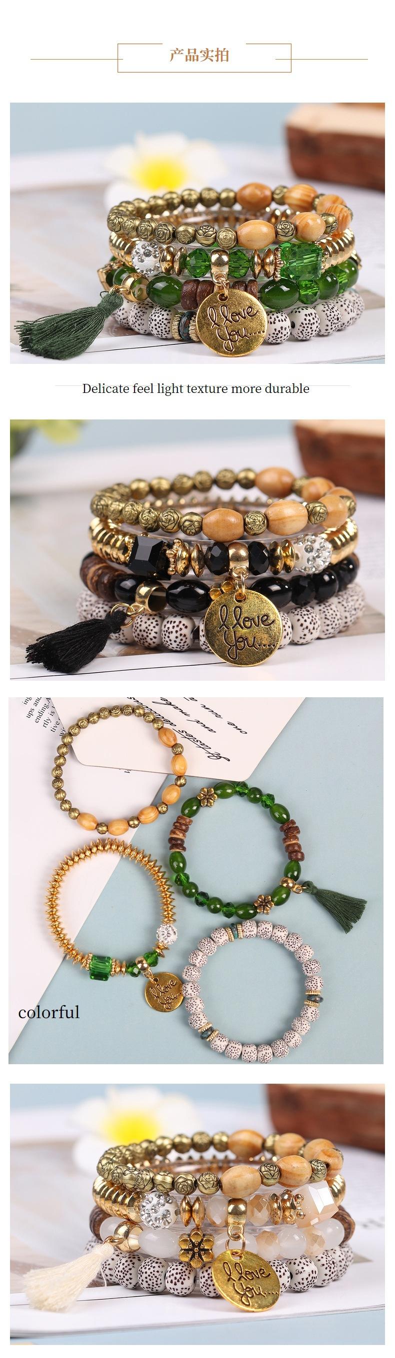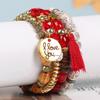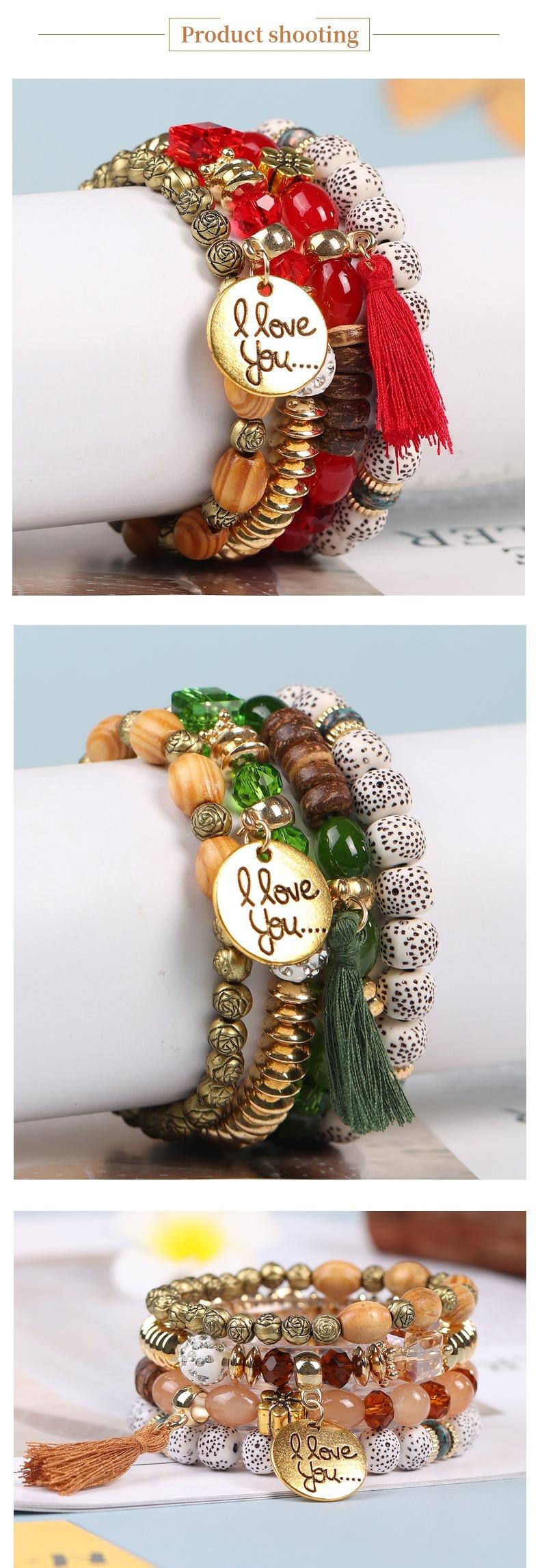 Set de Pulsera con Borla y Colgante Te Amo de Venta Caliente Europeo y Americano Cuentas de Madera Cuentas de Vidrio Acrílico Joyería Multicapa Lujo Ligero