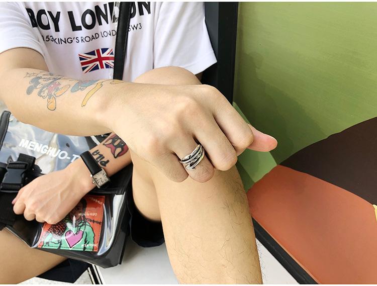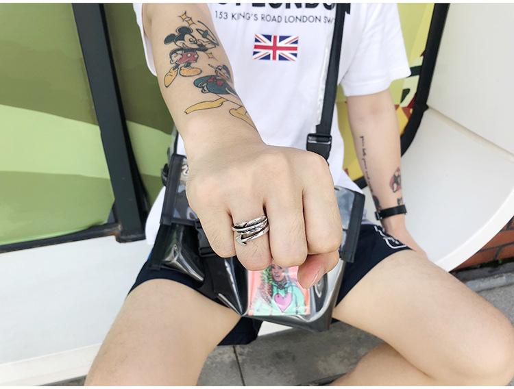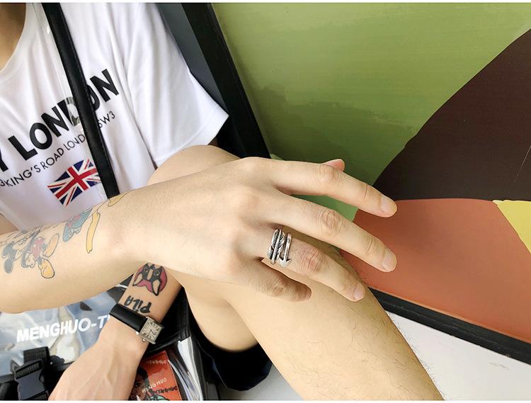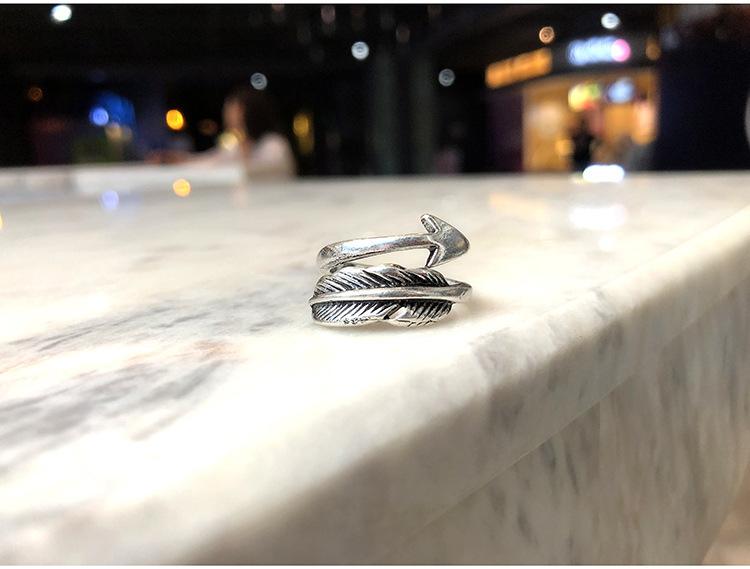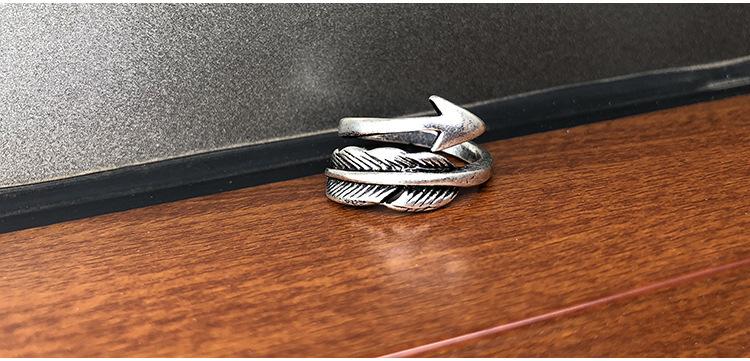 Anillo gótico vintage personalizado de estilo europeo y americano para hombre, con apertura de hoja y flecha, ajustable, con forma de flecha y pluma.