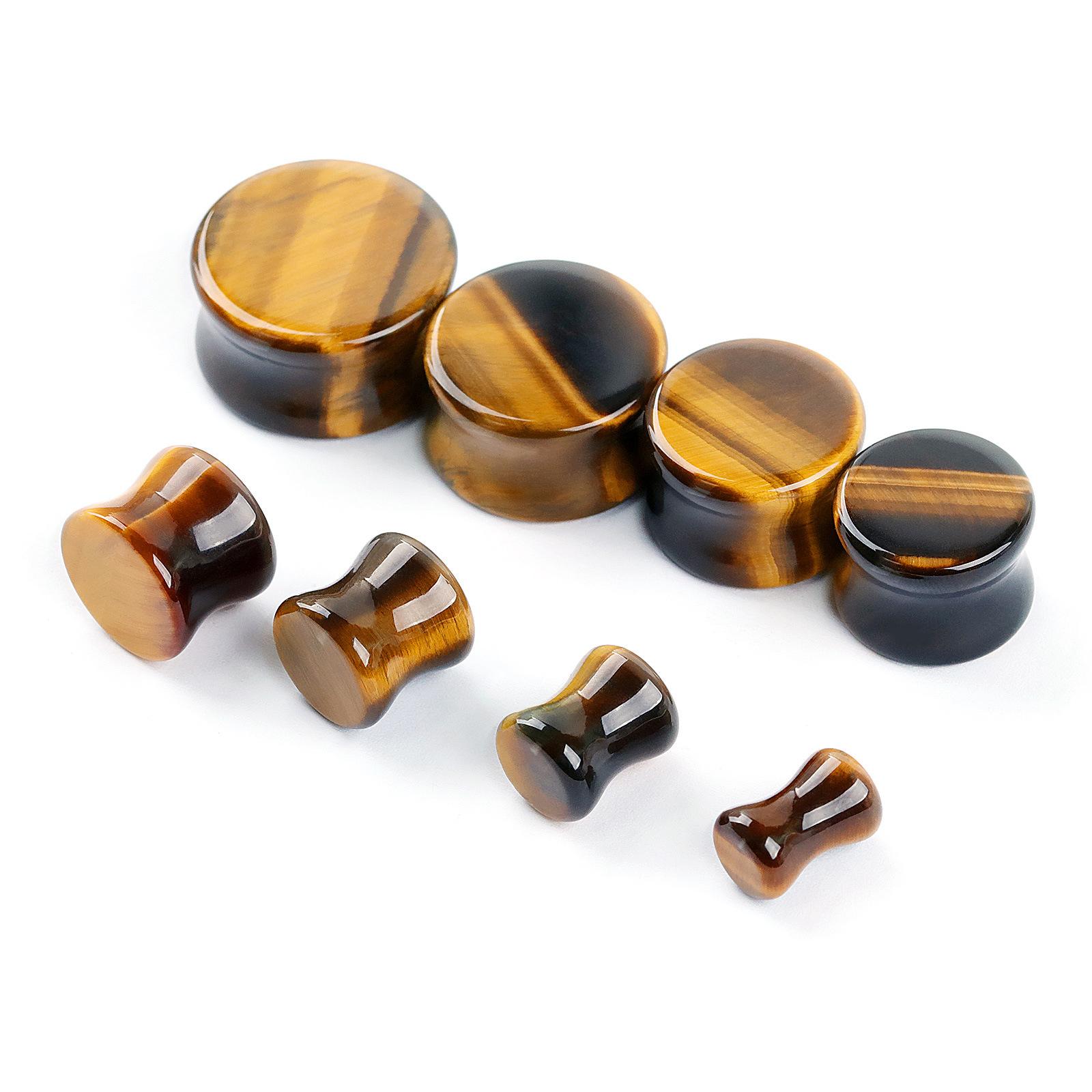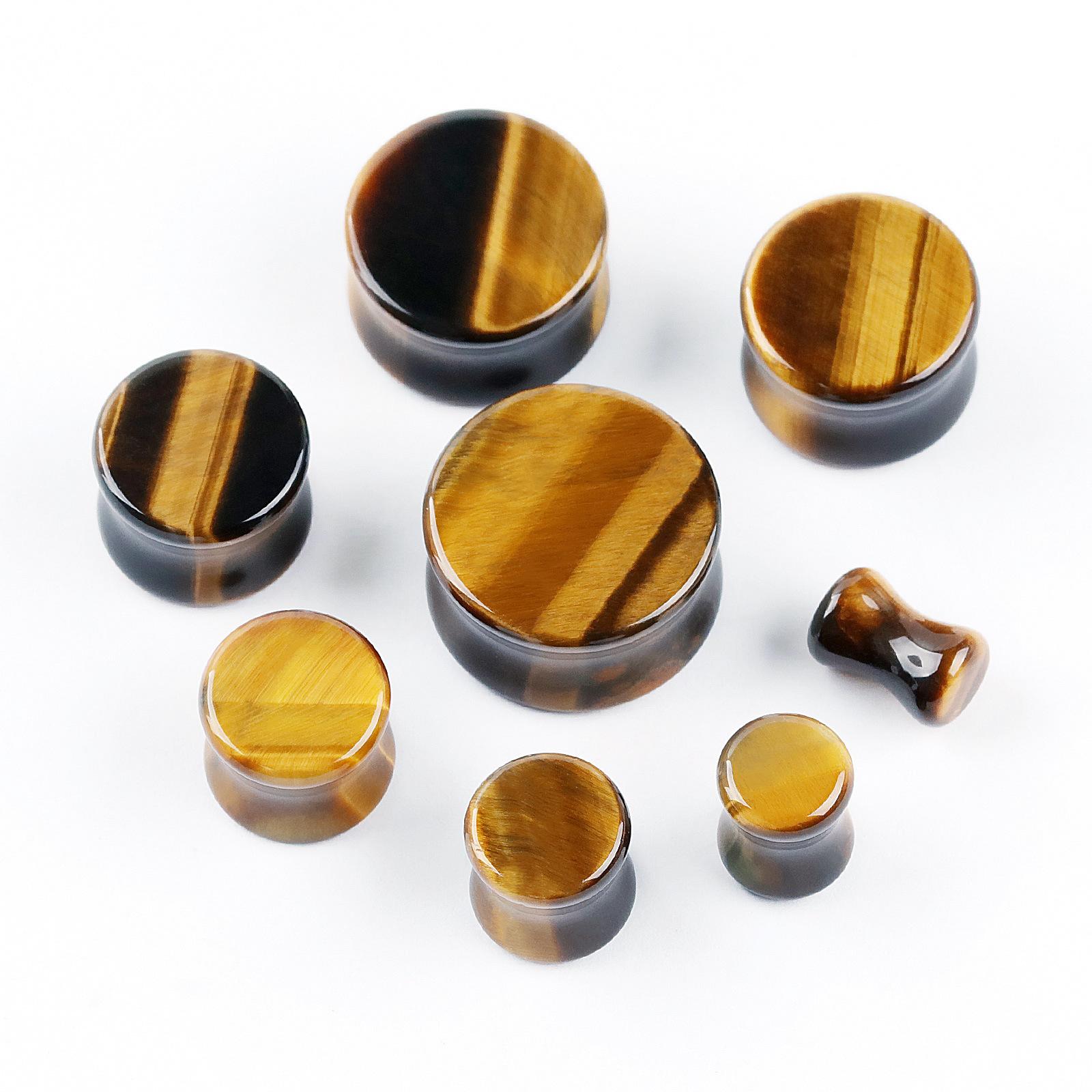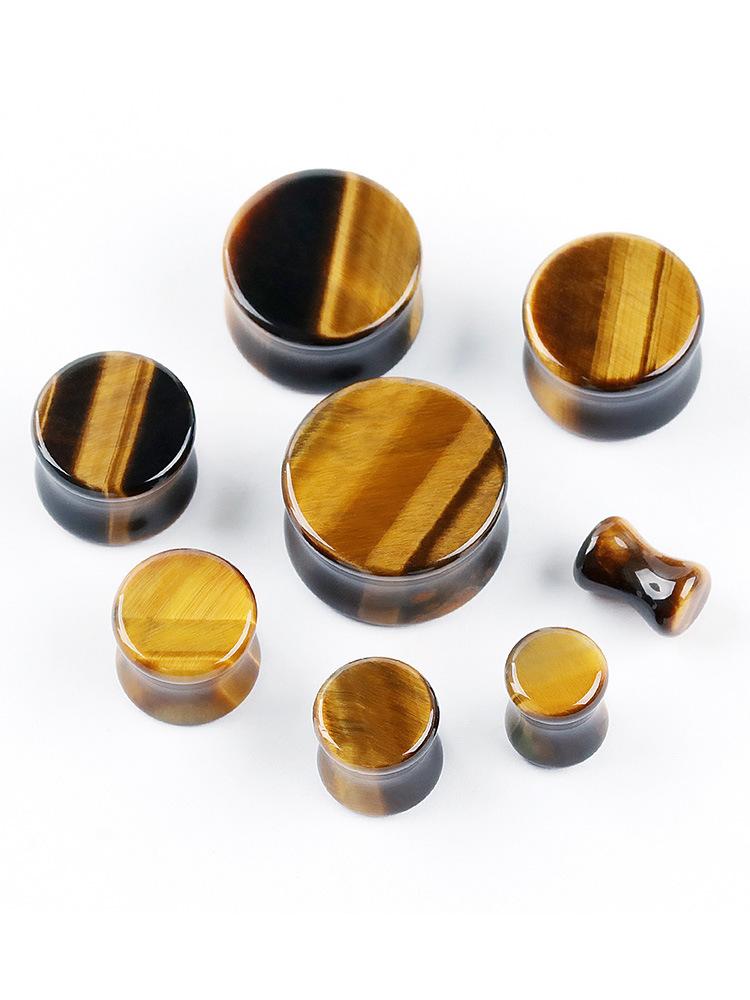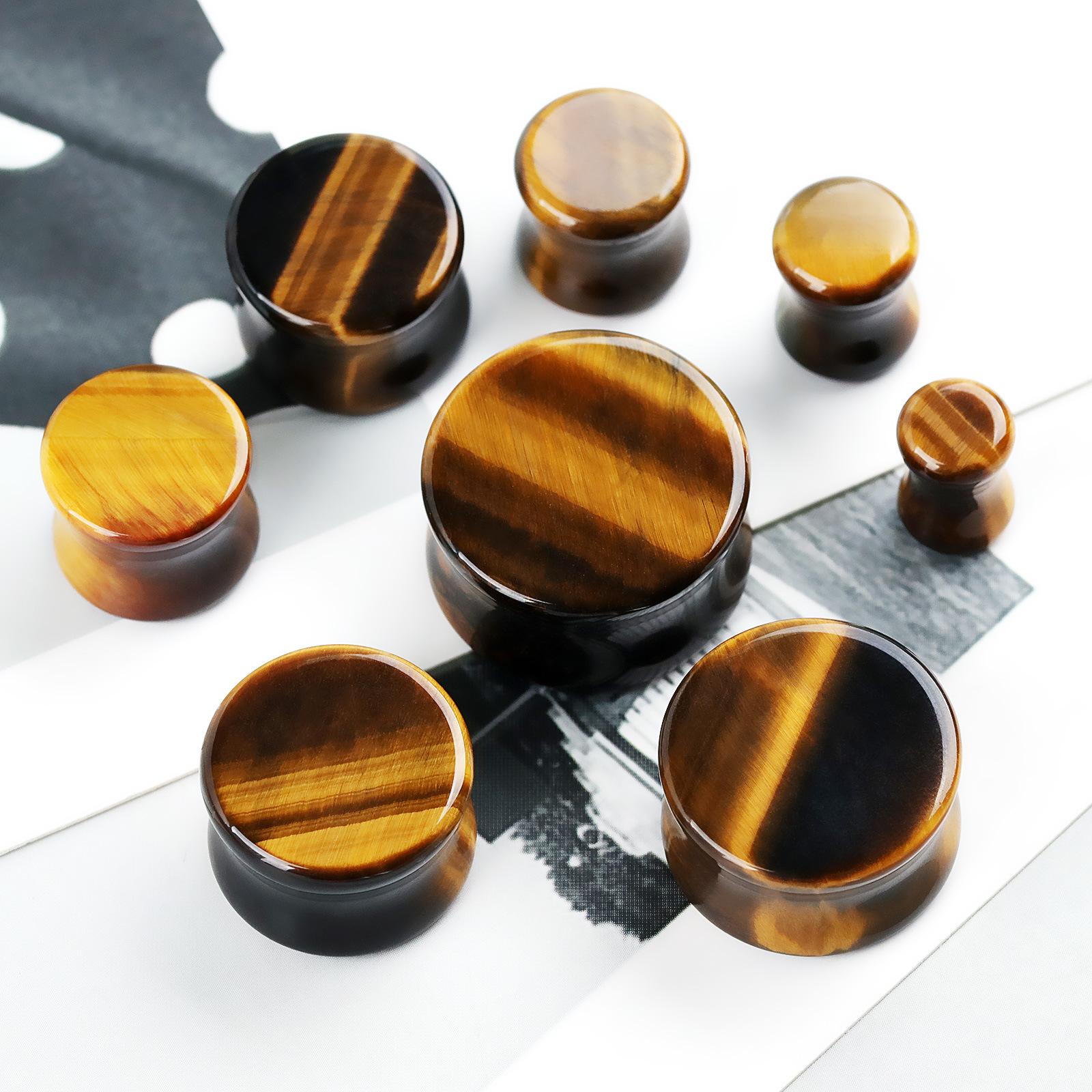 Compra Amazon comercio electrónico transfronterizo moda recta piedra expansión de oreja piedra ojo de tigre amarilla 6mm-20mm joyería piercing corporal para aurícula al por mayor en Joom.pro