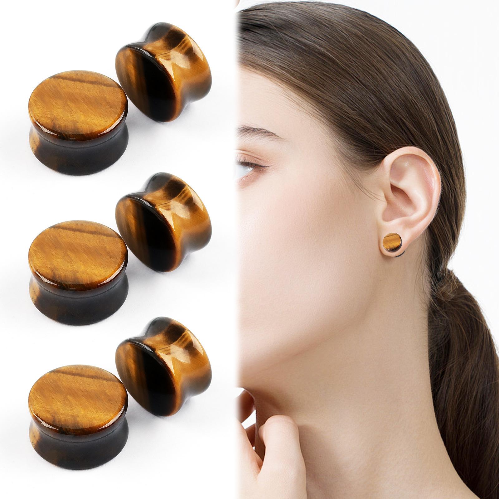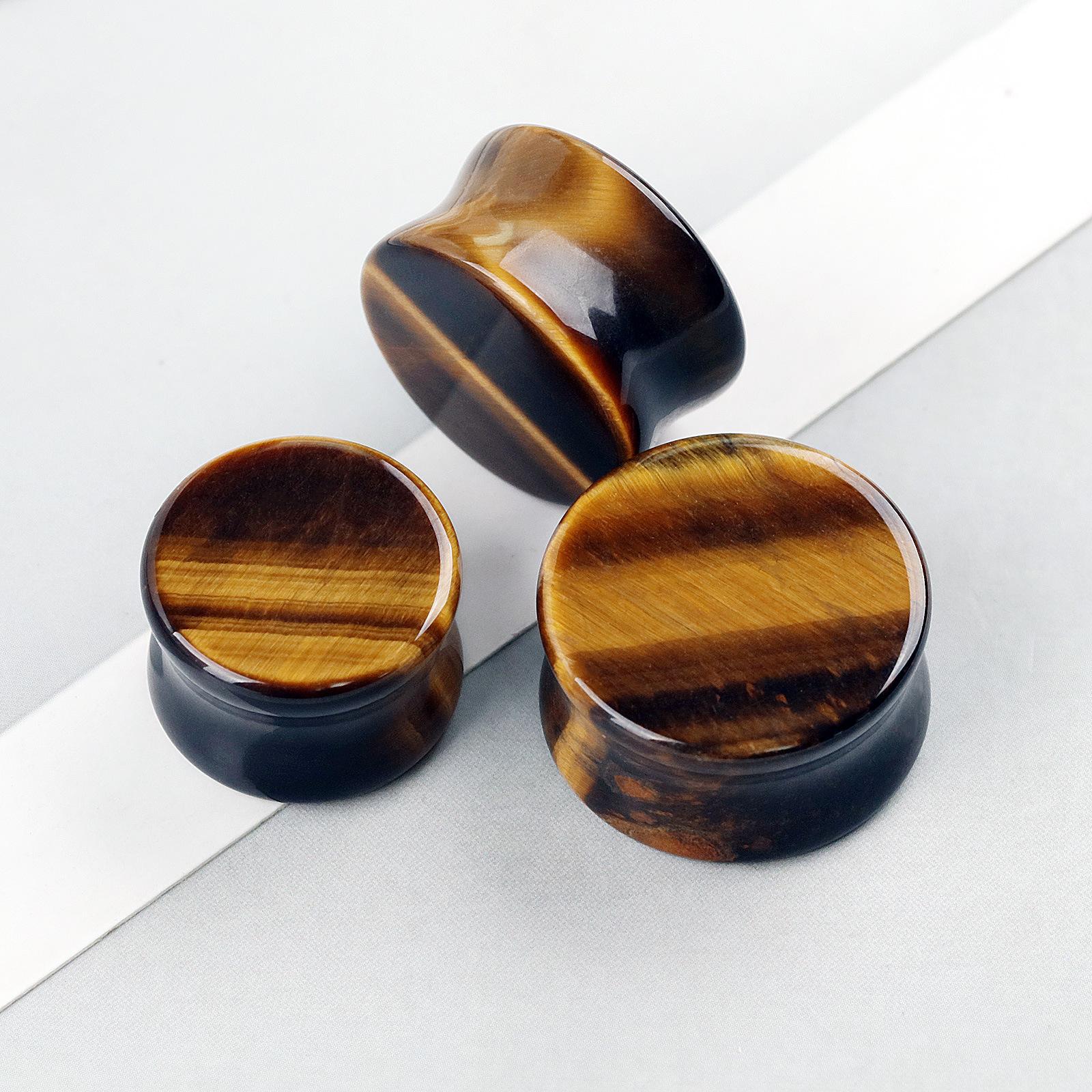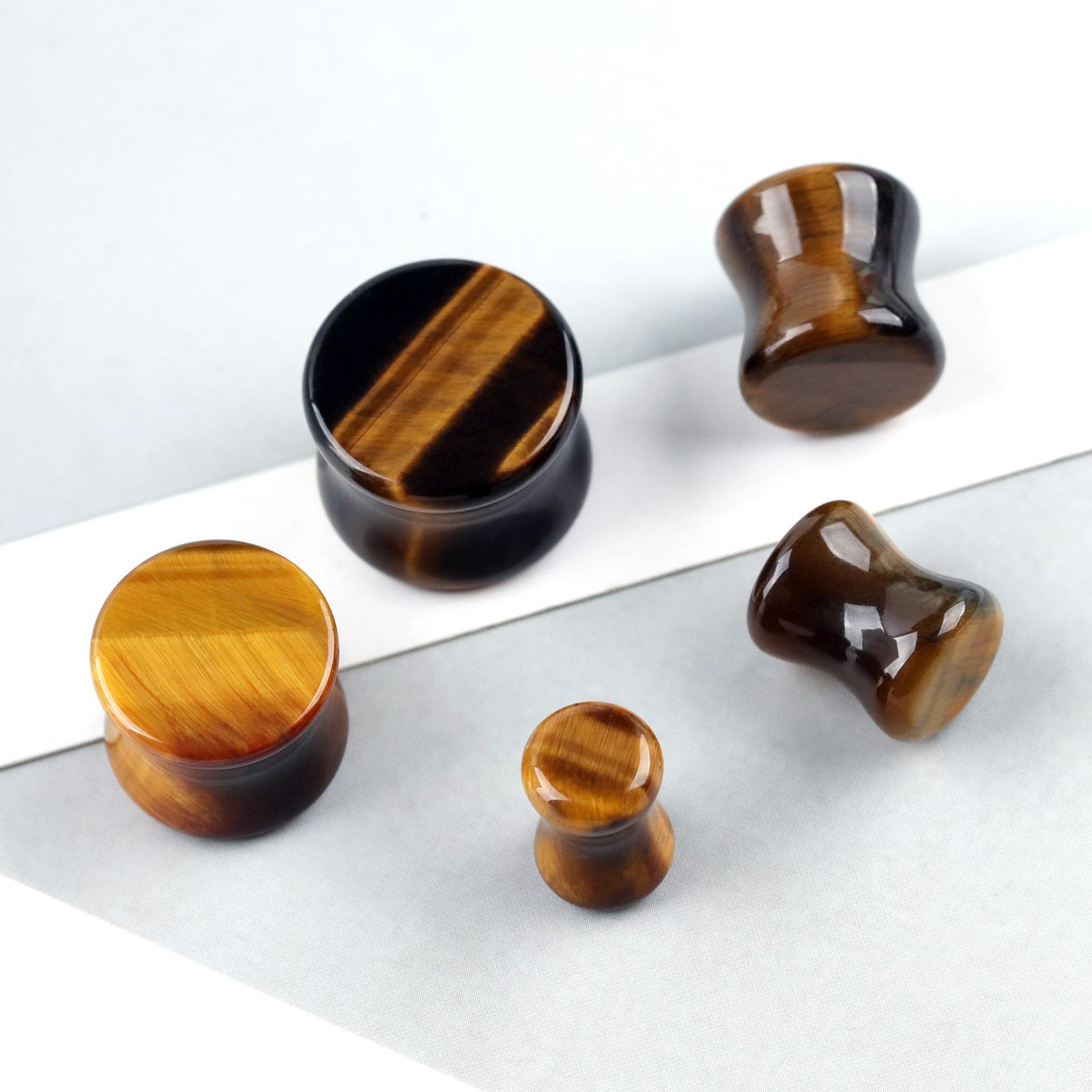 Compra Amazon comercio electrónico transfronterizo moda recta piedra expansión de oreja piedra ojo de tigre amarilla 6mm-20mm joyería piercing corporal para aurícula al por mayor en Joom.pro