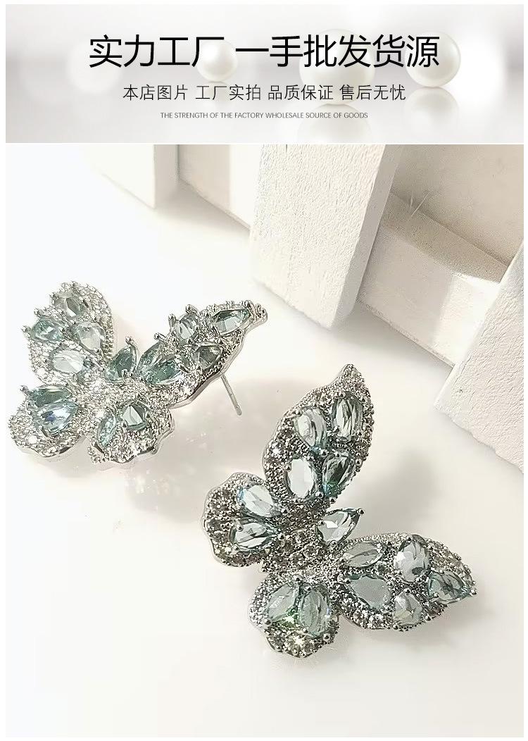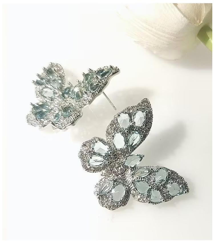 Aretes de Mariposa de Circonita de Lujo Ligero a la Moda, Aretes de Estilo de Celebridad de Internet Modernos y Únicos, Aretes Nicho Súper de Hada para Mujeres