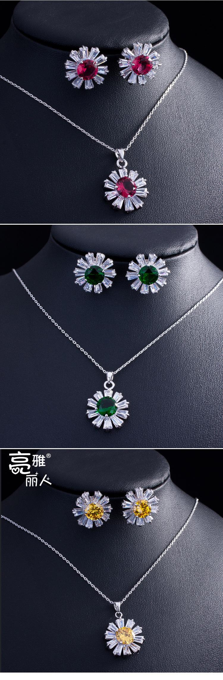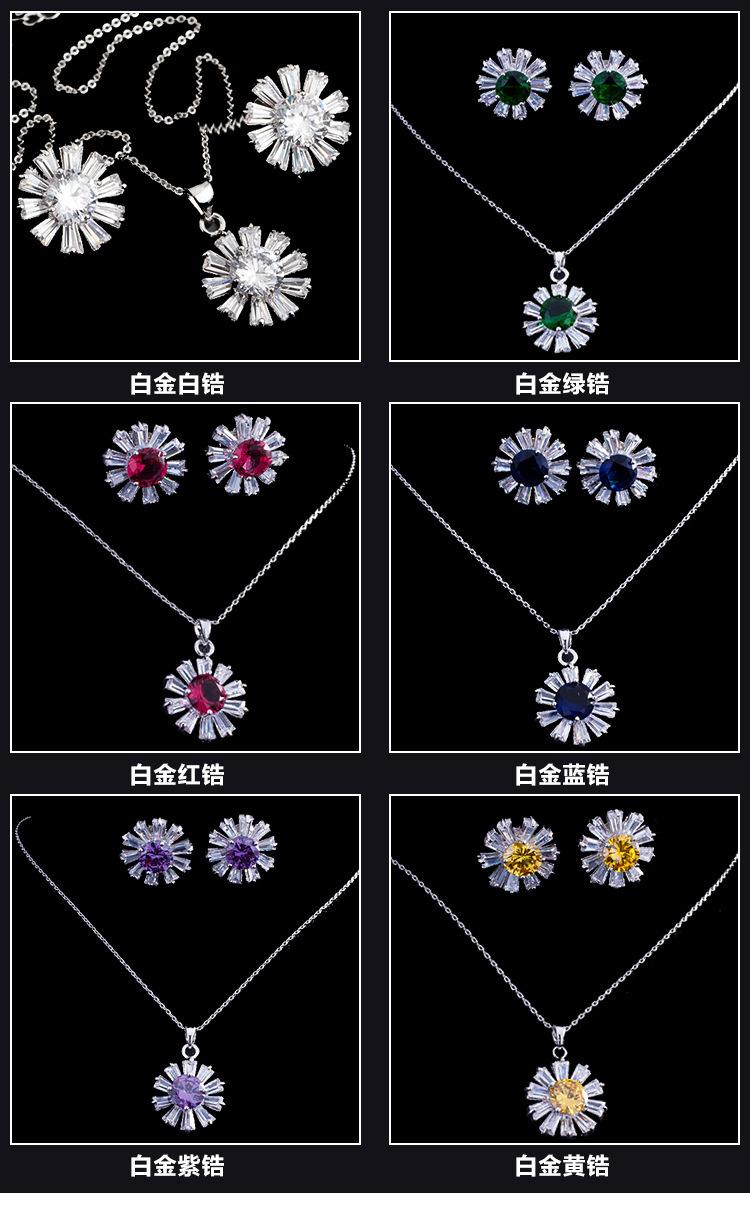 Pendientes de lujo europeos y americanos con circonitas, girasol, cadena de clavícula, collar adelgazante, conjunto de dos piezas, colgante pequeño, joyería