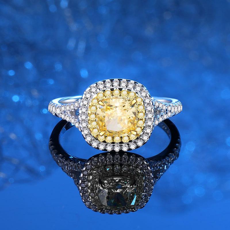 Compra Anillo Senior Sense de plata esterlina S925 con incrustaciones de diamante de alto carbono, diamante amarillo cuadrado, corte flor de hielo, joyería para mujer, suministro en vivo al por mayor en Joom.pro