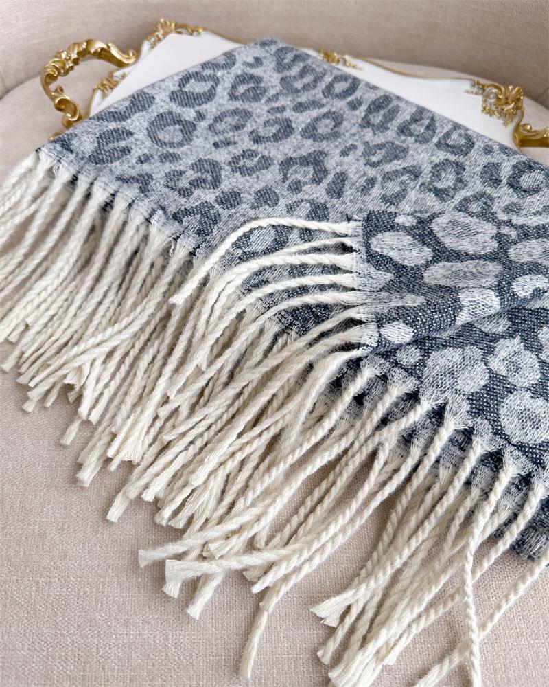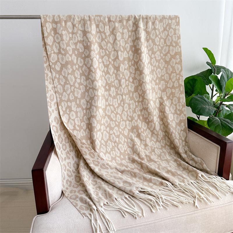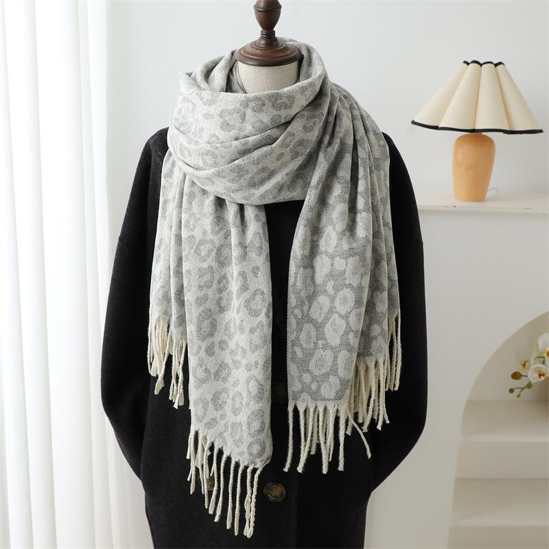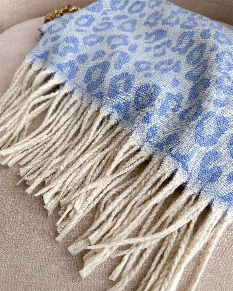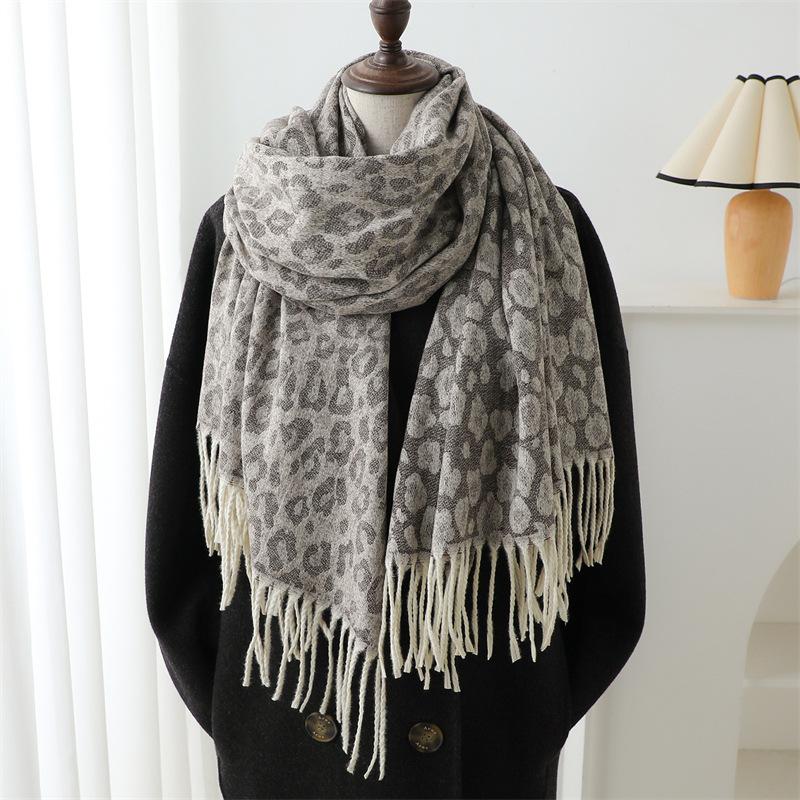 Nueva bufanda de cachemira con estampado de leopardo y jacquard para otoño e invierno, sencilla, combinable, cálida y con borlas para mujer.
