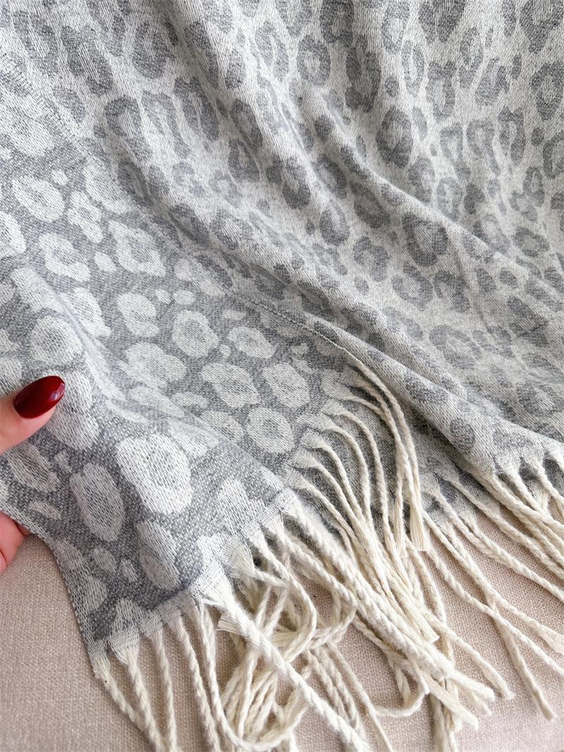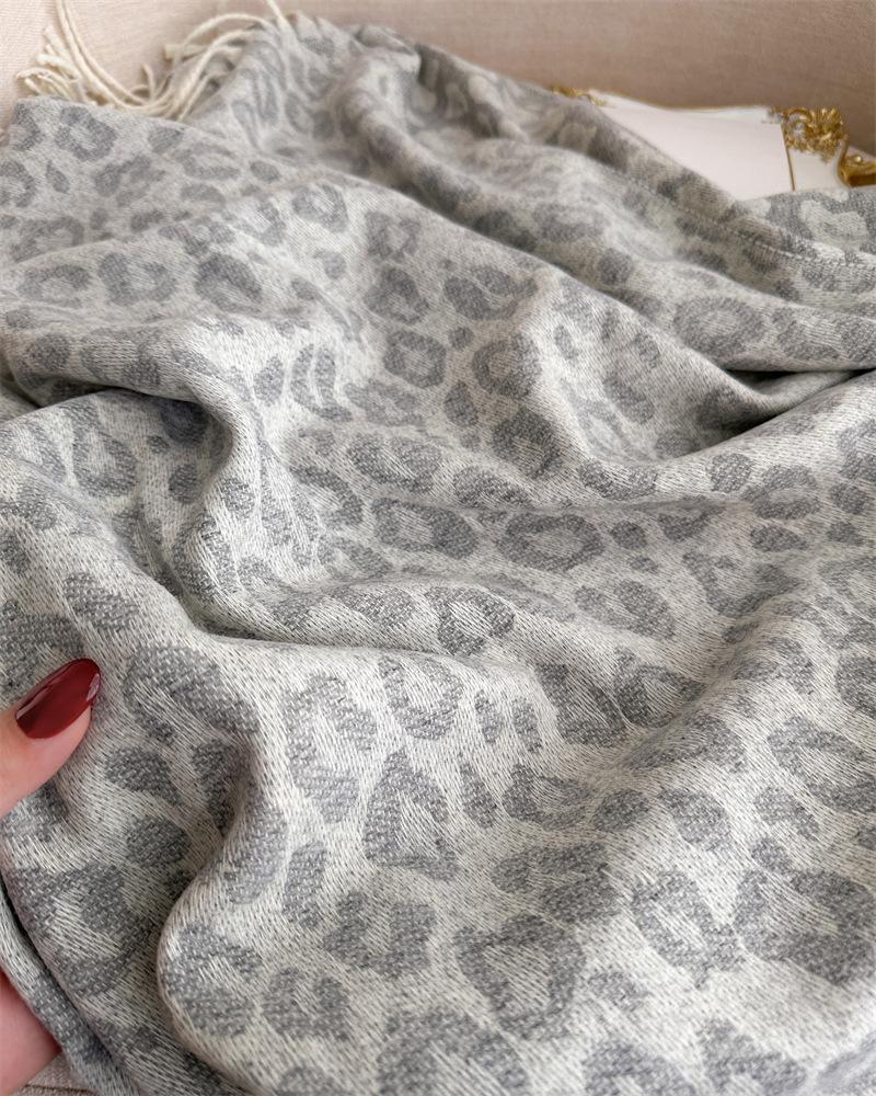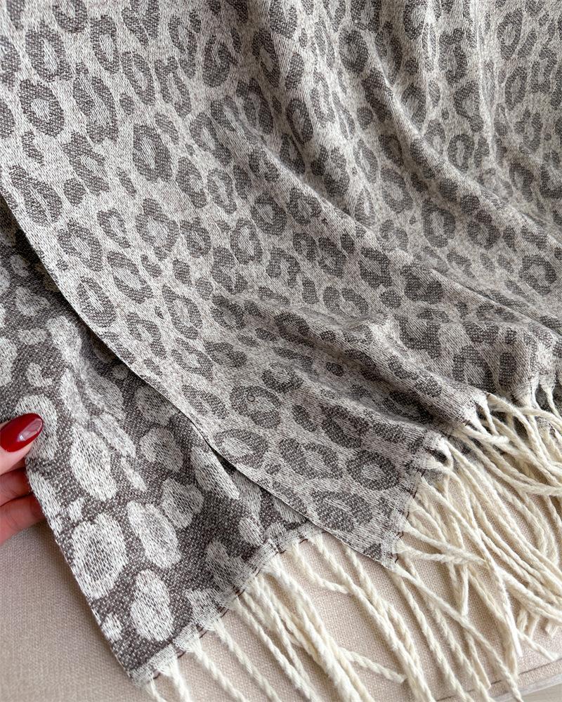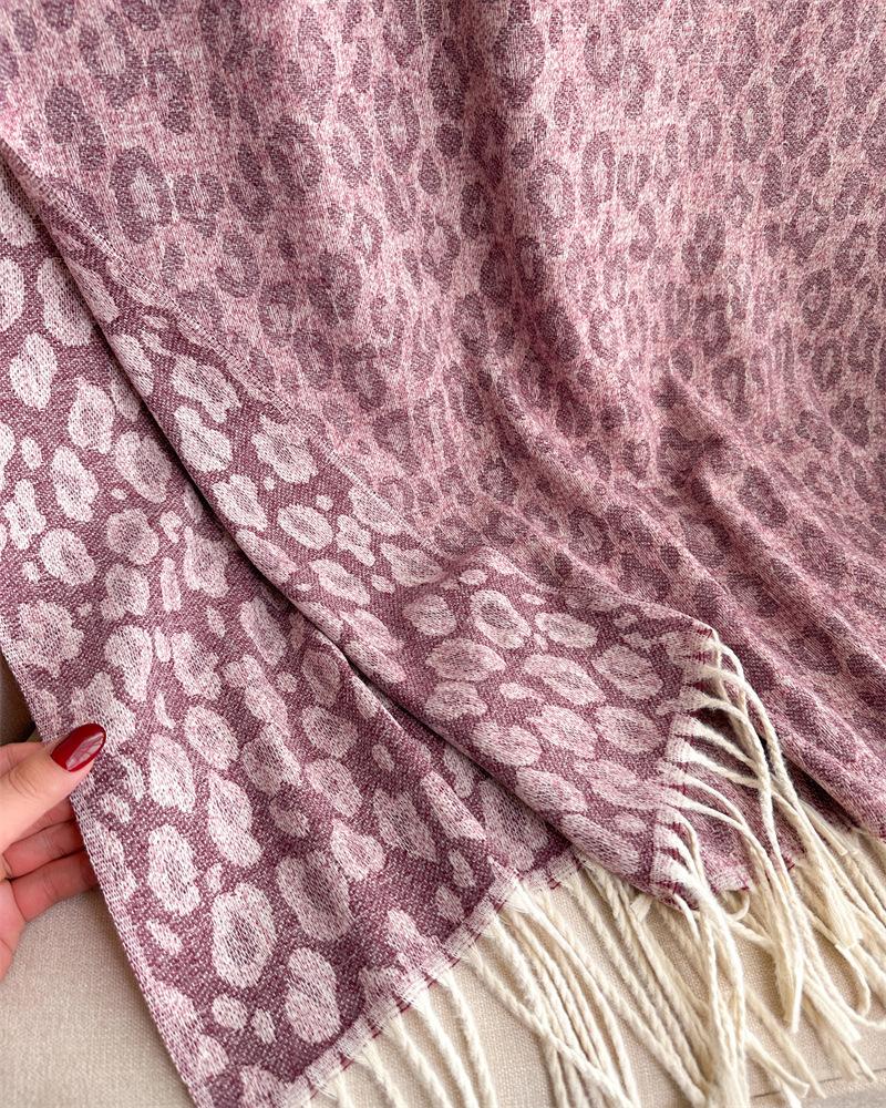 Nueva bufanda de cachemira con estampado de leopardo y jacquard para otoño e invierno, sencilla, combinable, cálida y con borlas para mujer.