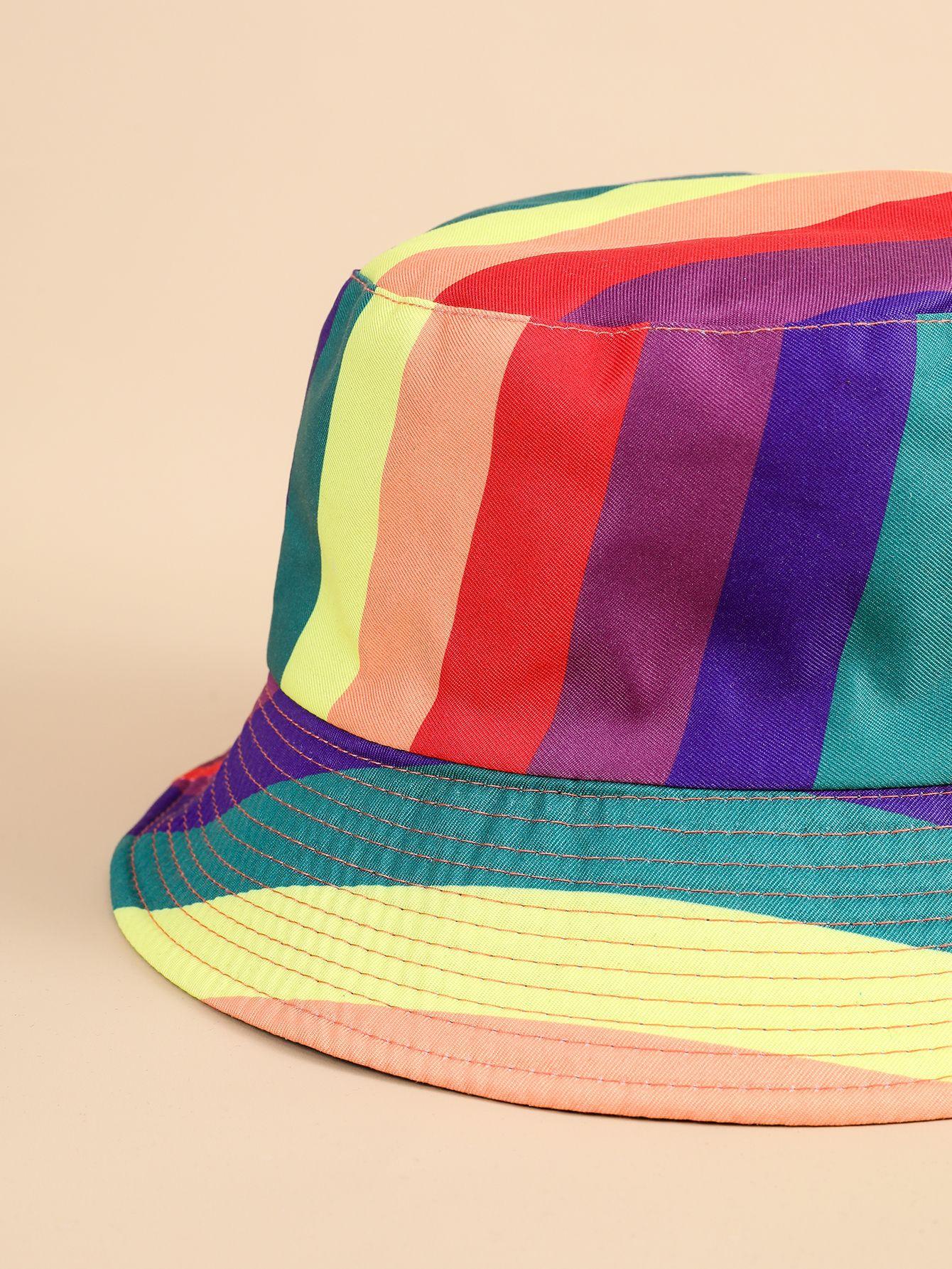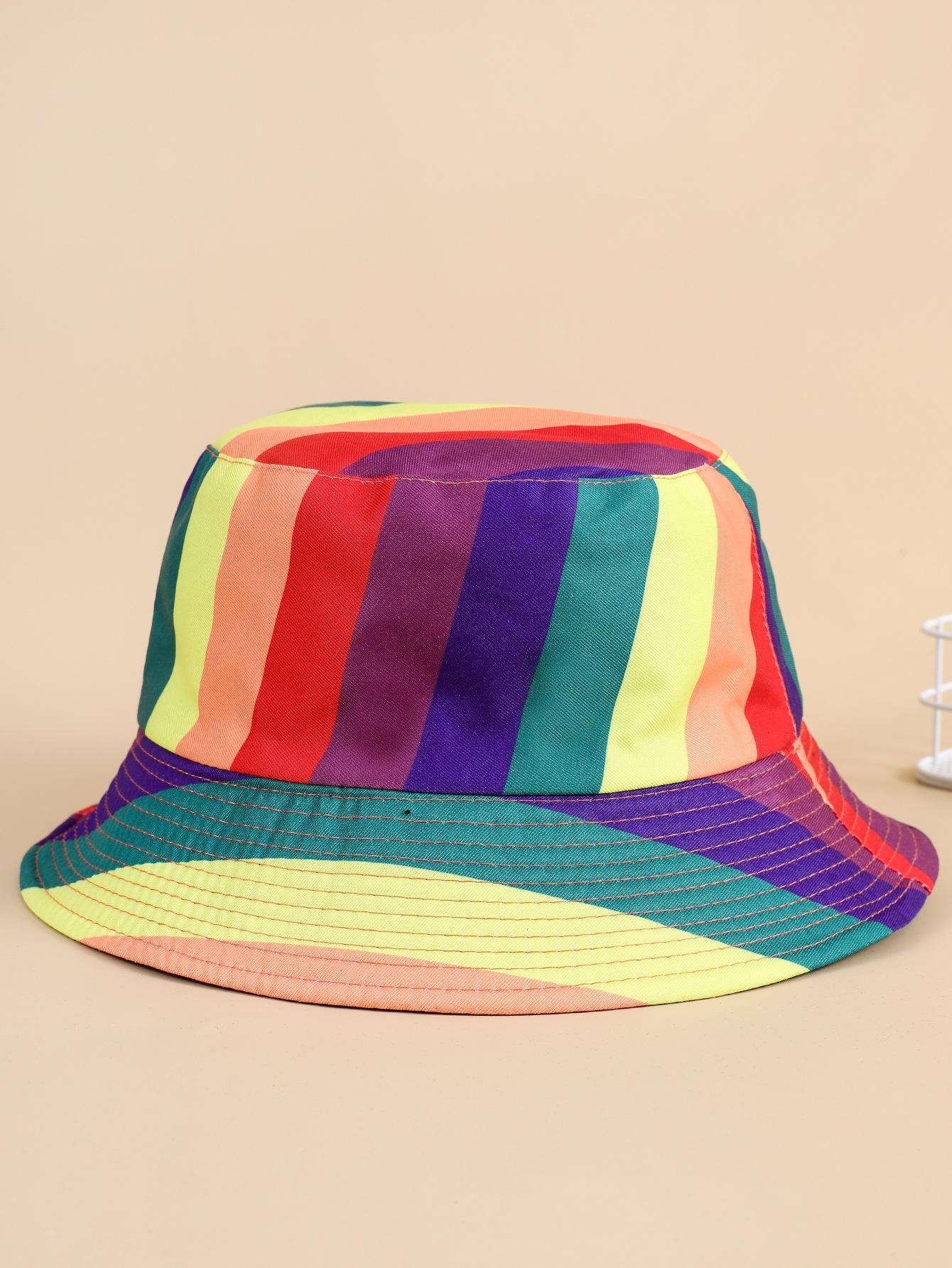 Nuevo sombrero de pescador arcoíris con costuras en la parte superior plana, versátil, para hombres y mujeres, para el sol, para viajes, para lavabo, de doble cara, para usar.