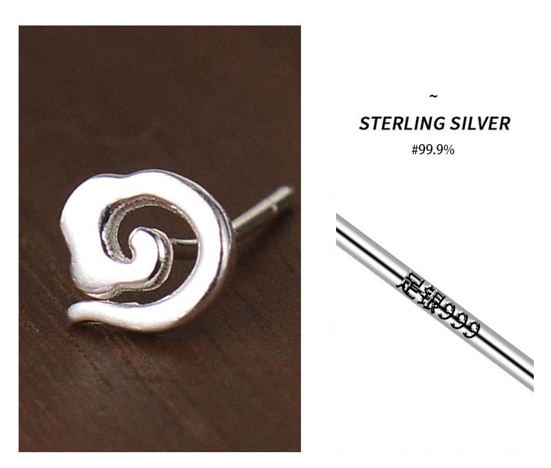 Aretes de botón de plata esterlina S999 de nube auspiciosa para mujer, aretes de diseño de nicho, aretes simples para perforación de oreja