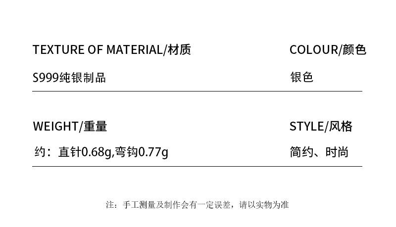 White straight needle Pure Silver