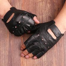 Guantes de cuero de medio dedo nuevos para hombres y mujeres, para montar, bailar, bailar, hacer ejercicio, deportes al aire libre, fitness, guantes de piel de oveja