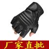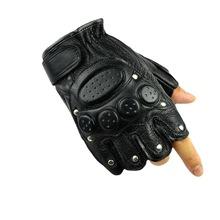 Guantes de medio dedo de piel de oveja para hombre, deportivos, antideslizantes, para fitness, al aire libre, tácticos, con remaches, sin dedos, para montar en motocicleta, guantes de medio dedo