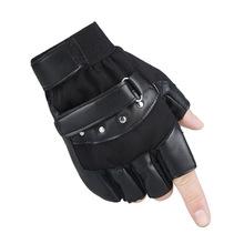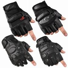Guantes de cuero de medio dedo para hombres y mujeres, para deportes al aire libre, ciclismo, fitness, montañismo, tácticos, para motocicletas, de cuero PU.