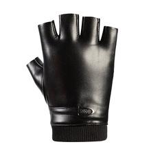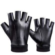 Guantes de cuero de medio dedo para hombre, otoño e invierno, además de terciopelo, cálidos, para pantalla táctil, para ciclismo al aire libre, conducción, impermeables, antideslizantes, sin dedos.