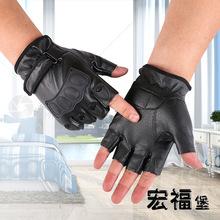 Guantes de cuero de medio dedo para hombre, para deportes de conducción, sin dedos, de medio dedo, tácticos, para ejercicio físico, ciclismo al aire libre, guantes de piel de oveja