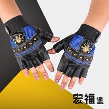 Guantes de medio dedo para hombre y mujer, con remaches de calavera, transpirables, de piel sintética, para ciclismo, deportes al aire libre, fitness, sin dedos.