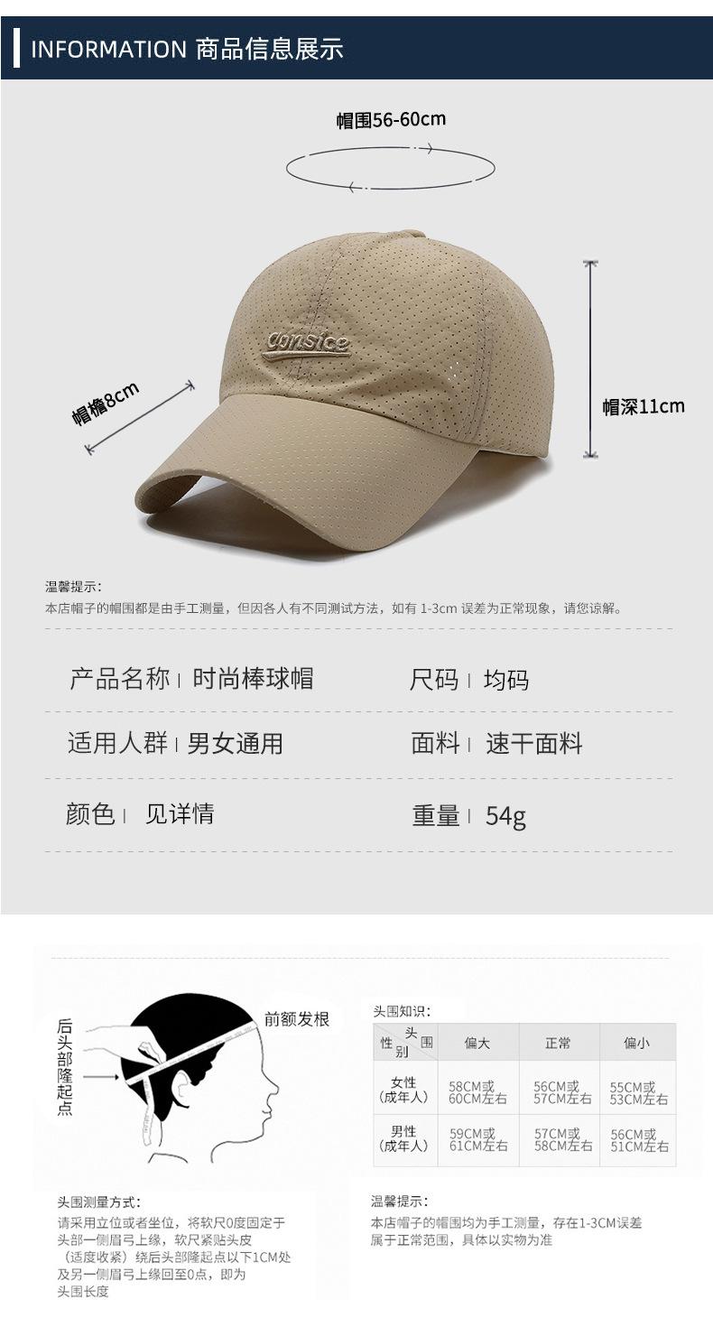 Gorra de béisbol perforada de secado rápido para hombre, nueva gorra de primavera y verano, informal, transpirable, con protección solar y para pesca.